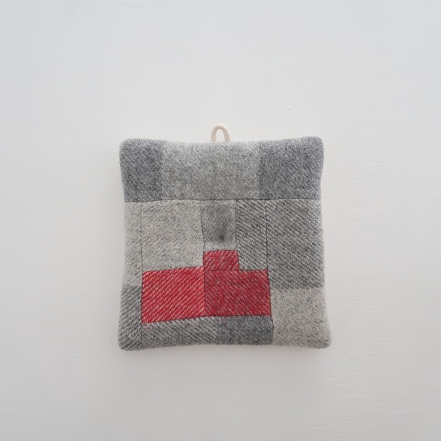 もの作りをする上で、どうしても溜まってしまう、試し織りした布地や製品サンプル。 手元に残ったそれらの布地に新たに陽が当たるように、パッチワークにして ポットホールダーにしました。 ( 素材には、マフラーなどにも使用している、柔らかく肌触りのよいウールを中心に使用しています。 ) 裏地には、11号綿帆布を使用。 表地と裏生地の間に中綿を入れ、暑い鍋蓋や薬缶も、安心してお持ち頂ける厚みとサイズに。 鍋つかみとしてのご使用の他、鍋敷きとしても〇。( ※ 鍋敷きとしてご使用頂く場合、沸騰して直ぐのものは載せないで下さい。 ) 今はもう制作していない布地等を使用していたりするので、一点もの的な感覚でお選び頂けたらと思います。 --------------------------------------------------- [ ご注意事項 ] ※ 汚れが付着した際は、直ぐに、しっかりと水洗いして下さい。 ※ 洗濯は、中性洗剤を使用し手洗いして下さい。また、洗濯の後、軽く脱水し、形を整えて干して下さい。 ※ 洗濯や摩擦により、縮みや毛羽立ちが生じることがあります。 --------------------------------------------------- qua : wool ( 中綿 : polyester 100% / 裏地 : cotton 100% ) col : gray base size : one size 幅 : 16.0cm 高さ : 16.0cm ※ 5mm前後の個体差がある場合がございます。 Made in Japan ( 大阪 貝塚 のアトリエの手機で織った布地の残布を使用して形にしています。) --------------------------------------------------- [ 製品の発送について ] 金、土、日曜日 及び 祝日は、発送業務を休止しております。金、土、日曜日 及び に祝日に頂いたご注文分は、翌営業日以降、順次発送させて頂きます。( 月曜日が祝日の場合は、火曜日以降の発送 ) ※ こちらの製品は、ご注文金額が ¥5,000-未満の場合は レターパックライト( 郵便受けに投函 )、¥5,000-以上の場合は レターパックプラス( 対面での受取 )でお送りさせて頂きます。 --------------------------------------------------- ※ 残布を使用しているため、一点一点がそれぞれ異なります。 ※ 撮影日の光の具合等により、色合いが実際とは多少異なる場合がございます。 ※ 寸法の微妙な誤差は、ご了承下さい。 ※ コチラの製品は、実店舗でも販売致しております。ご注文と入れ違いで売れた際は、ご容赦願います。 ご不明な点等ございましたら、どうぞお気軽にお問い合わせ下さい。