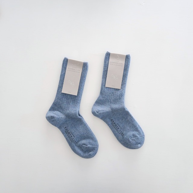 【 KARMAN LINE bland concept 】 「 私たちからあなたへ あなたから大切な人へ 贈り伝えたいものを編み続けます 」 2014年、お二人でスタートされたブランド。 靴下の産地である 奈良の方々と共につくる「デザイン」「糸」「履き心地」にこだわった一足、そこへ宙の言葉を込めて発表されています。 コットンやシルク、ウールなど天然の素材を中心に使用しながら、豊富な色展開も魅力で、メンズサイズのものもございます。 ::::::::::::::::::::::::::::::: その「 KARMAN LINE 」から。 こちらは「 NORMA / じょうぎ座 」と星座の名前がつけられた、コットン×和紙のローゲージのリブソックス。 コットンと和紙の糸を引き揃えて編み立てているので、吸放湿・通気性に優れ、コットンの素朴でソフトな肌触りと、和紙のサラリとした清涼感、消臭効果といった、それぞれの特質を併せ持っています。 また、履き口のゴムを極力減らすことによって、履き口の締め付けを軽減。( やや緩めで、リラックスして履きたい方におススメです ) 春夏シーズン、快適に、リラックスして履いて頂けるソックスです 。 ---------------------------------------------- < ご注意事項 > ※ 天然の繊維で編み上げた製品は、化学繊維のものに比べ繊細です。繊維を傷めず、長くご愛用頂くためには、洗濯は、ぬるま湯に中性洗剤をご使用頂き、手洗いををお勧め致します。洗濯機をご使用の場合も、中性洗剤をご使用の上、弱水流で洗濯ネットをご使用下さい。 ※ 洗濯の後、履き口を上にして陰干しして下さい。 ※ 乾燥機のご使用は お控え下さい。 --------------------------------------------- qua : cotton 48% japanese paper 26% polyester 25% polyurethane 1% col : smoke blue size : 23.0~25.0cm ( かかとから履き口までの長さ : 約21.0cm ) ※ 一つ一つ若干の個体差がございます。 Made in Japan ---------------------------------------------------- [ 製品の発送について ] 金、土、日曜日 及び 祝日は、発送業務を休止しております。金、土、日曜日 及び に祝日に頂いたご注文分は、翌営業日以降、順次発送させて頂きます。( 月曜日が祝日の場合は、火曜日以降の発送 ) ※ こちらの製品は、ご注文金額が ¥5,000-未満の場合は レターパックライト( 郵便受けに投函 )、¥5,000-以上の場合は レターパックプラス( 対面での受取 )でお送りさせて頂きます。 ---------------------------------------------------- ※ 撮影日の光の具合等により、色合いが実際とは多少異なる場合がございます。 ※ 寸法の微妙な誤差は、ご了承下さい。 ※ コチラの製品は、実店舗でも販売致しております。ご注文と入れ違いで売れた際は、ご容赦願います。 ご不明な点等ございましたら、どうぞお気軽にお問い合わせ下さい。