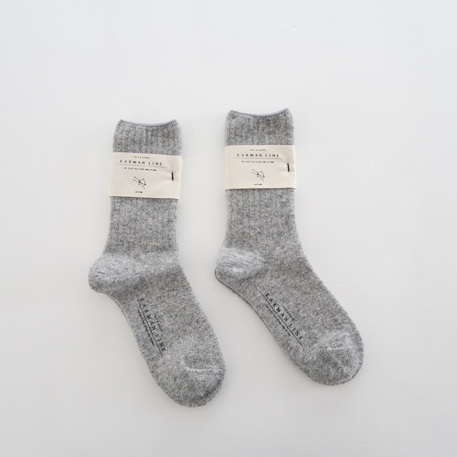 【 KARMAN LINE bland concept 】 「 私たちからあなたへ あなたから大切な人へ 贈り伝えたいものを編み続けます 」 2014年、お二人でスタートされたブランド。 靴下の産地である 奈良の方々と共につくる「デザイン」「糸」「履き心地」にこだわった一足、そこへ宙の言葉を込めて発表されています。 コットンやシルク、ウールなど天然の素材を中心に使用しながら、豊富な色展開も魅力で、メンズサイズのものもございます。 ::::::::::::::::::::::::::::::: その「 KARMAN LINE 」から。 こちらは「 NORMA / じょうぎ座 」と星座の名前がつけられた、コットン×シルクのローゲージのリブソックス。 コットンとシルクの糸を引き揃えて編み立てているので、吸湿・放湿・保温性に優れ、コットンの素朴でソフトな肌触りと、シルクの人肌に近いしっとり感といった、それぞれの良いところを併せ持っています。 また、履き口のゴムを極力減らすことによって、履き口の締め付けを軽減。( やや緩めで、リラックスして履きたい方におススメです ) 程よく肉厚な生地感なので、季節を問わず、通年的に履いて頂けます。 ---------------------------------------------- < ご注意事項 > ※ 天然の繊維で編み上げた製品は、化学繊維のものに比べ繊細です。繊維を傷めず、長くご愛用頂くためには、洗濯は、ぬるま湯に中性洗剤をご使用頂き、手洗いををお勧め致します。洗濯機をご使用の場合も、中性洗剤をご使用の上、弱水流で洗濯ネットをご使用下さい。 ※ 洗濯の後、履き口を上にして陰干しして下さい。 ※ 乾燥機のご使用はお控え下さい。 --------------------------------------------- qua : cotton 52% silk 40% polyester 6% polyurethane 2% col : moon gray size : 23.0~25.0cm ( かかとから履き口までの長さ : 約20.0cm ) ※ 一つ一つ若干の個体差がございます。 Made in Japan ---------------------------------------------------- [ 製品の発送について ] 金、土、日曜日 及び 祝日は、発送業務を休止しております。金、土、日曜日 及び に祝日に頂いたご注文分は、翌営業日以降、順次発送させて頂きます。( 月曜日が祝日の場合は、火曜日以降の発送 ) ※ こちらの製品は、ご注文金額が ¥5,000-未満の場合は レターパックライト( 郵便受けに投函 )、¥5,000-以上の場合は レターパックプラス( 対面での受取 )でお送りさせて頂きます。 ---------------------------------------------------- ※ 撮影日の光の具合等により、色合いが実際とは多少異なる場合がございます。 ※ 寸法の微妙な誤差は、ご了承下さい。 ※ コチラの製品は、実店舗でも販売致しております。ご注文と入れ違いで売れた際は、ご容赦願います。 ご不明な点等ございましたら、どうぞお気軽にお問い合わせ下さい。