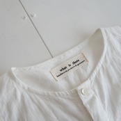 そのカディコットンの中でも、経糸に約100カウント(1kgからとれる糸束。数が大きくなるほど細い)緯糸に約150カウントのアンバーチャルカ (ガンジーが普及させた、所謂ガンジーチャルカを一段階機械化させたもの)の糸で織られた極薄手のカディコットンを素材として、ドロップショルダーで、身幅が かなりワイドな ノーカラーシャツを制作いたしました。