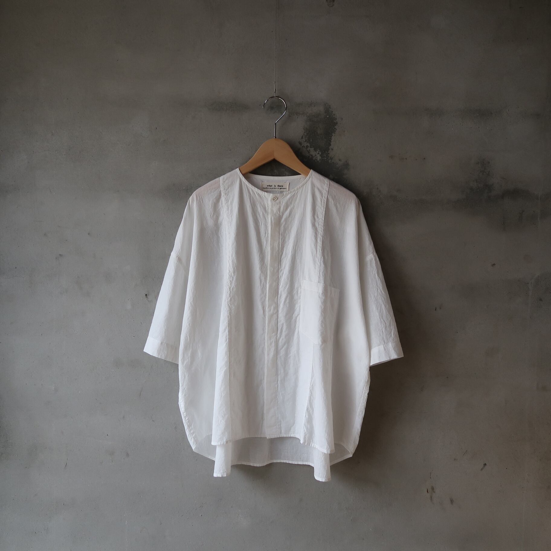 what is there / double chest half-sleeve wide shirt ( off white / size : 2 )