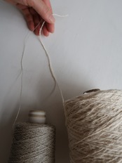 その「 ガラ紡 」で、通常は大半が廃棄処分になる " 落ち綿 " を原料にして、ゆっくりと紡がれた糸は、ポコポコと不揃いで愛嬌のある、とても魅力的な糸。( ※ オーガニックコットンです。 )