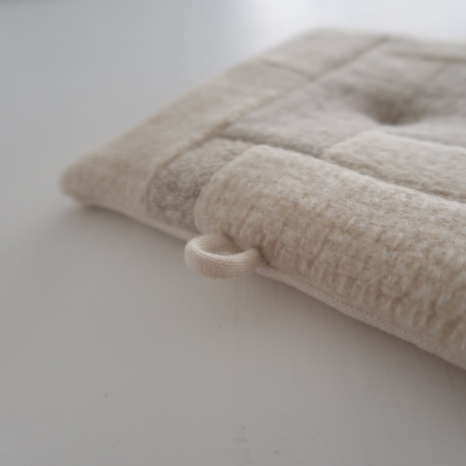 表地と裏生地の間に中綿を入れ、暑い鍋蓋や薬缶も、安心してお持ち頂ける厚みとサイズに。