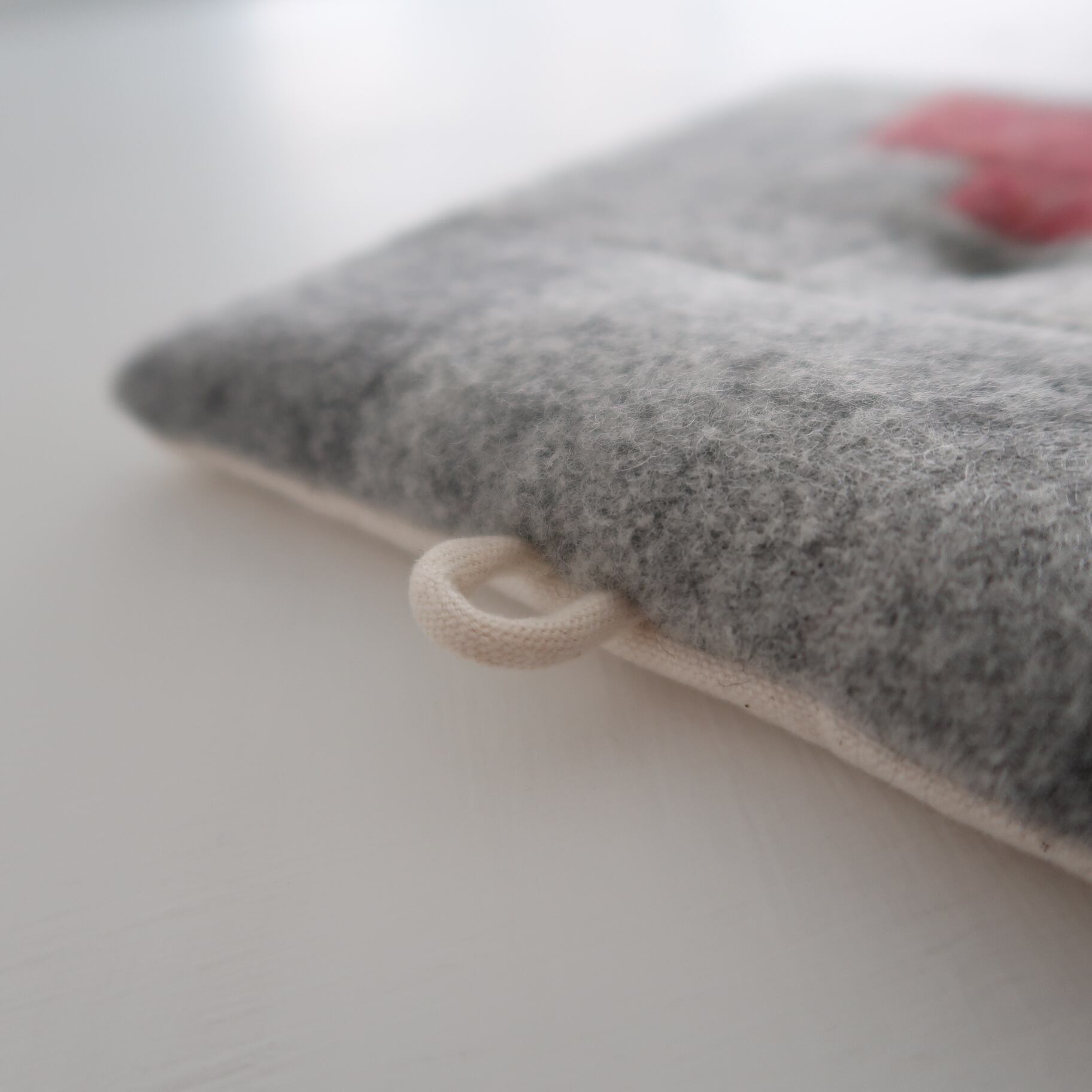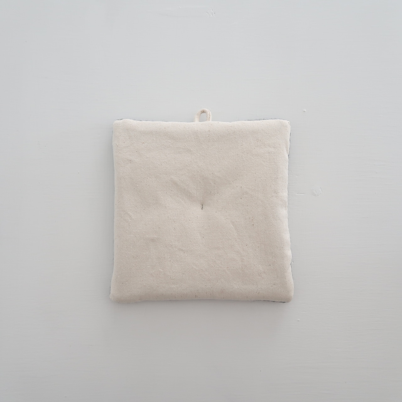 表地と裏生地の間に中綿を入れ、暑い鍋蓋や薬缶も、安心してお持ち頂ける厚みとサイズに。