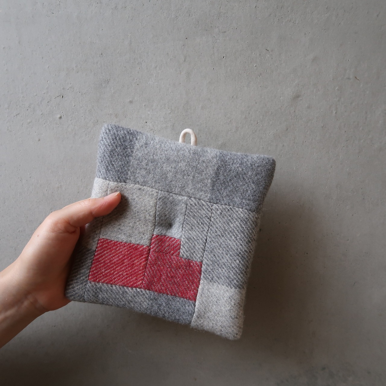 手元に残ったそれらの布地に新たに陽が当たるように、パッチワークにして ポットホールダーにしました。