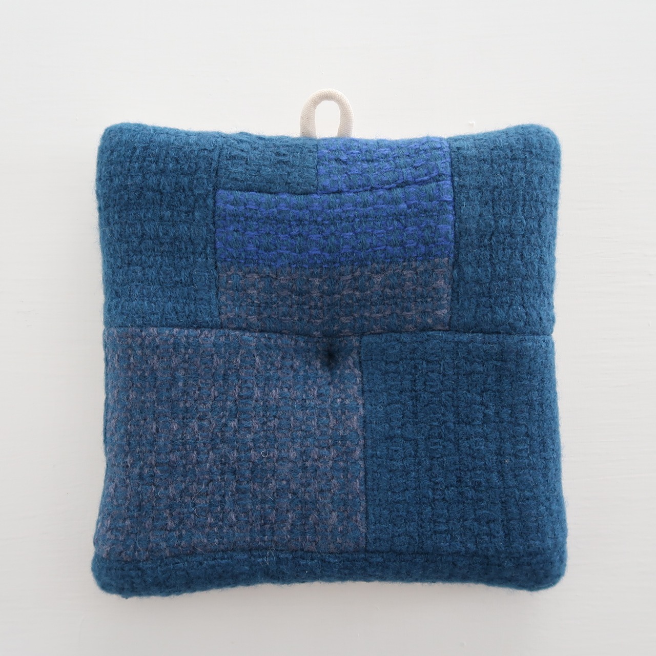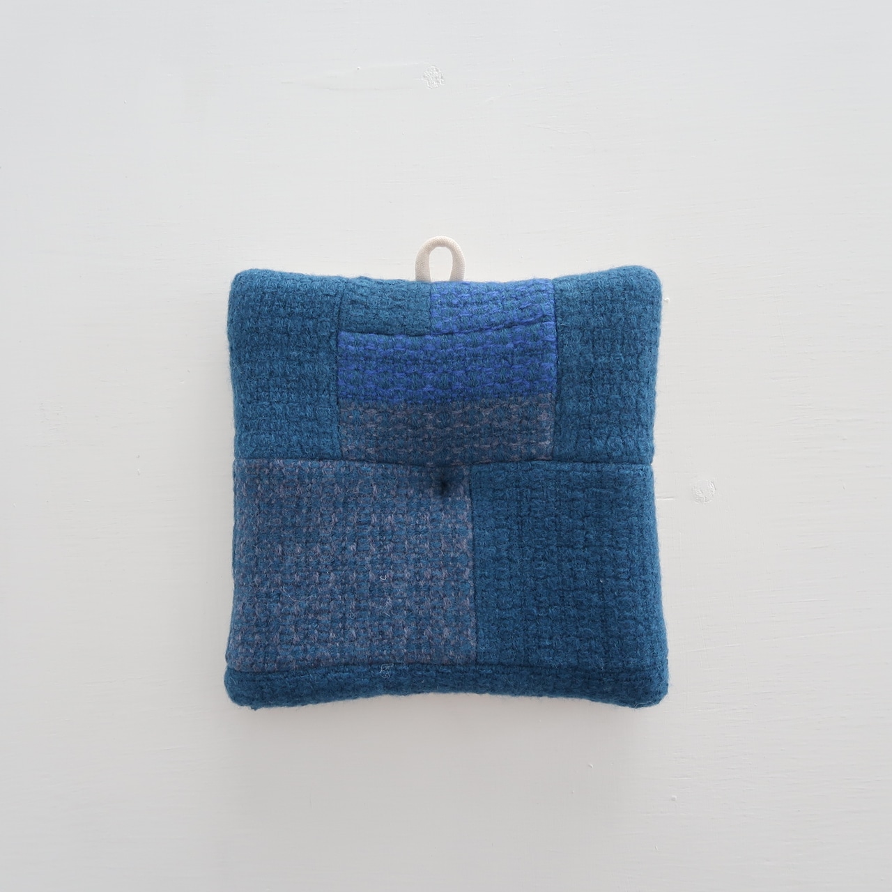 手元に残ったそれらの布地に新たに陽が当たるように、パッチワークにして ポットホールダーにしました。