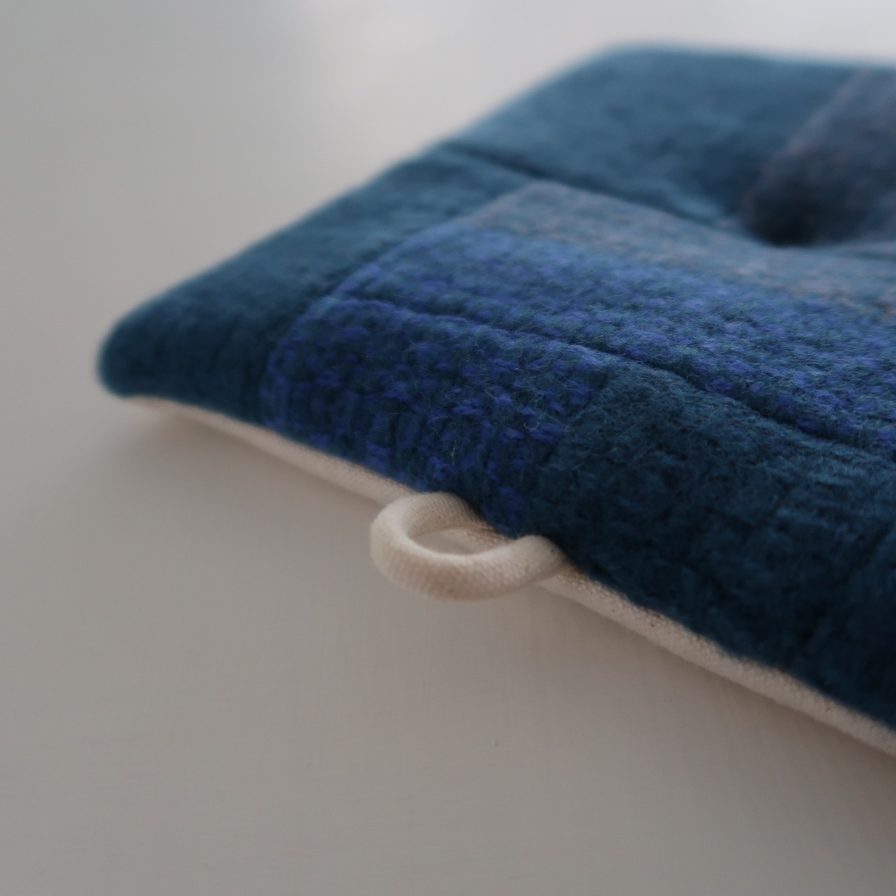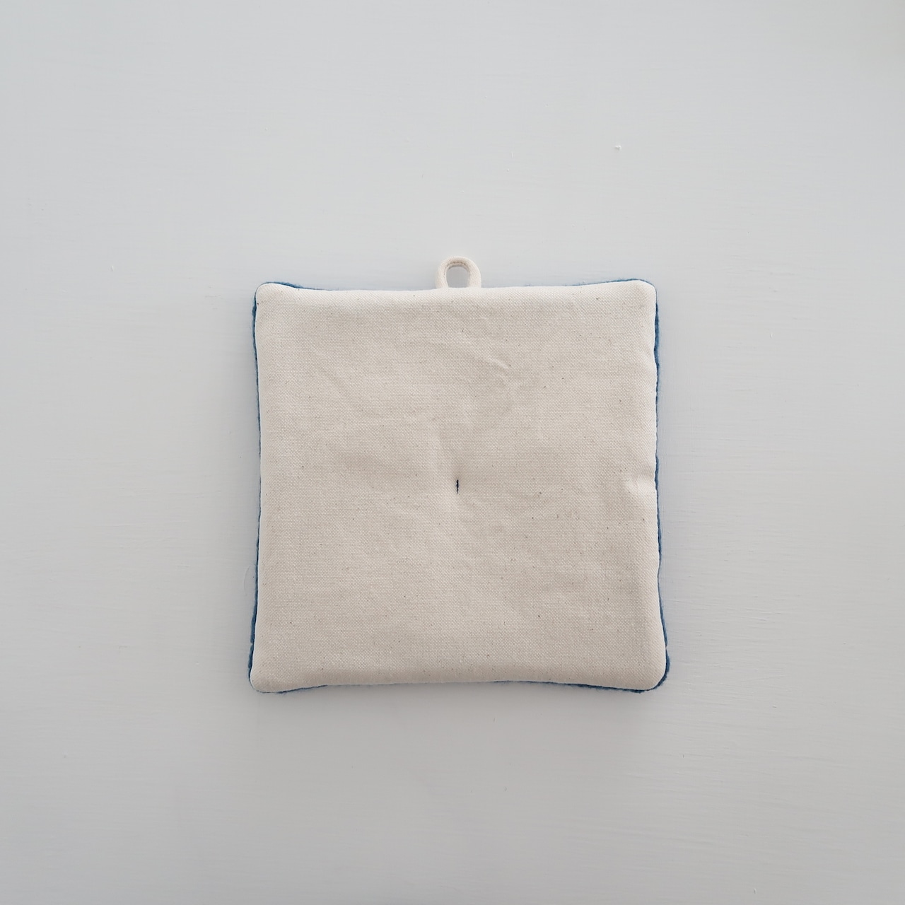 表地と裏生地の間に中綿を入れ、暑い鍋蓋や薬缶も、安心してお持ち頂ける厚みとサイズに。