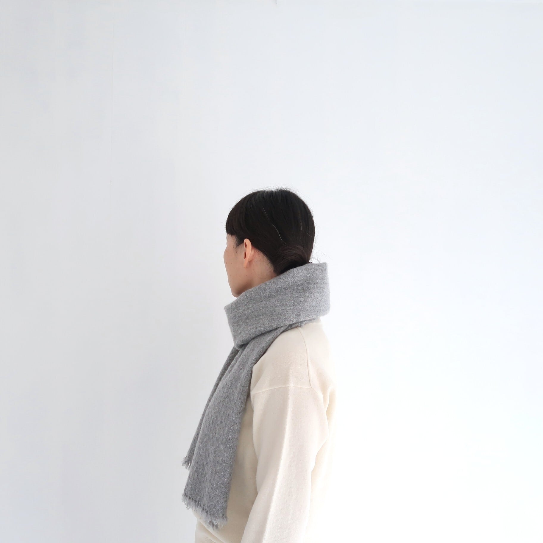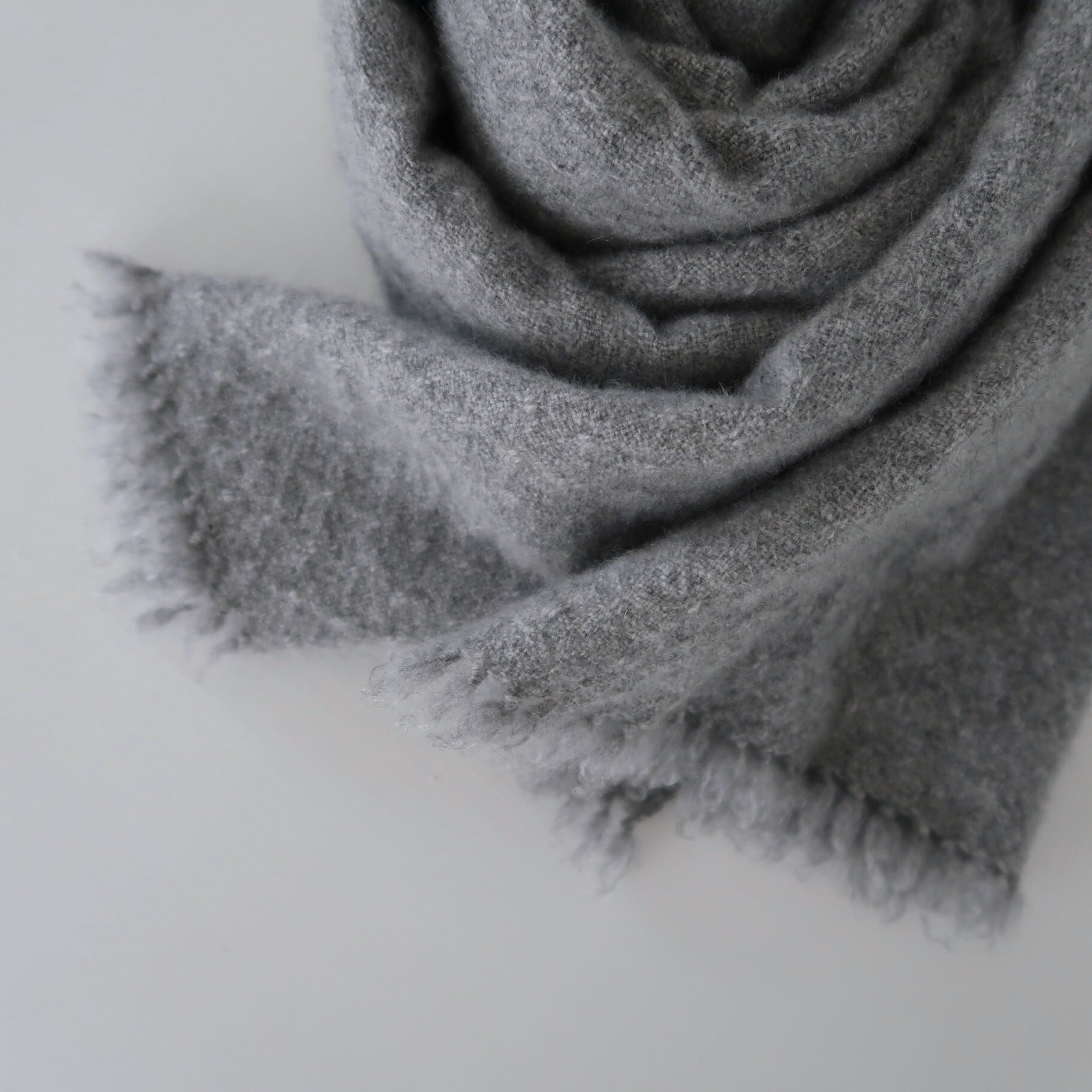 程よいボリュームがあり、滑らかで柔らかく軽い着け心地のカシミヤ100%のマフラー。