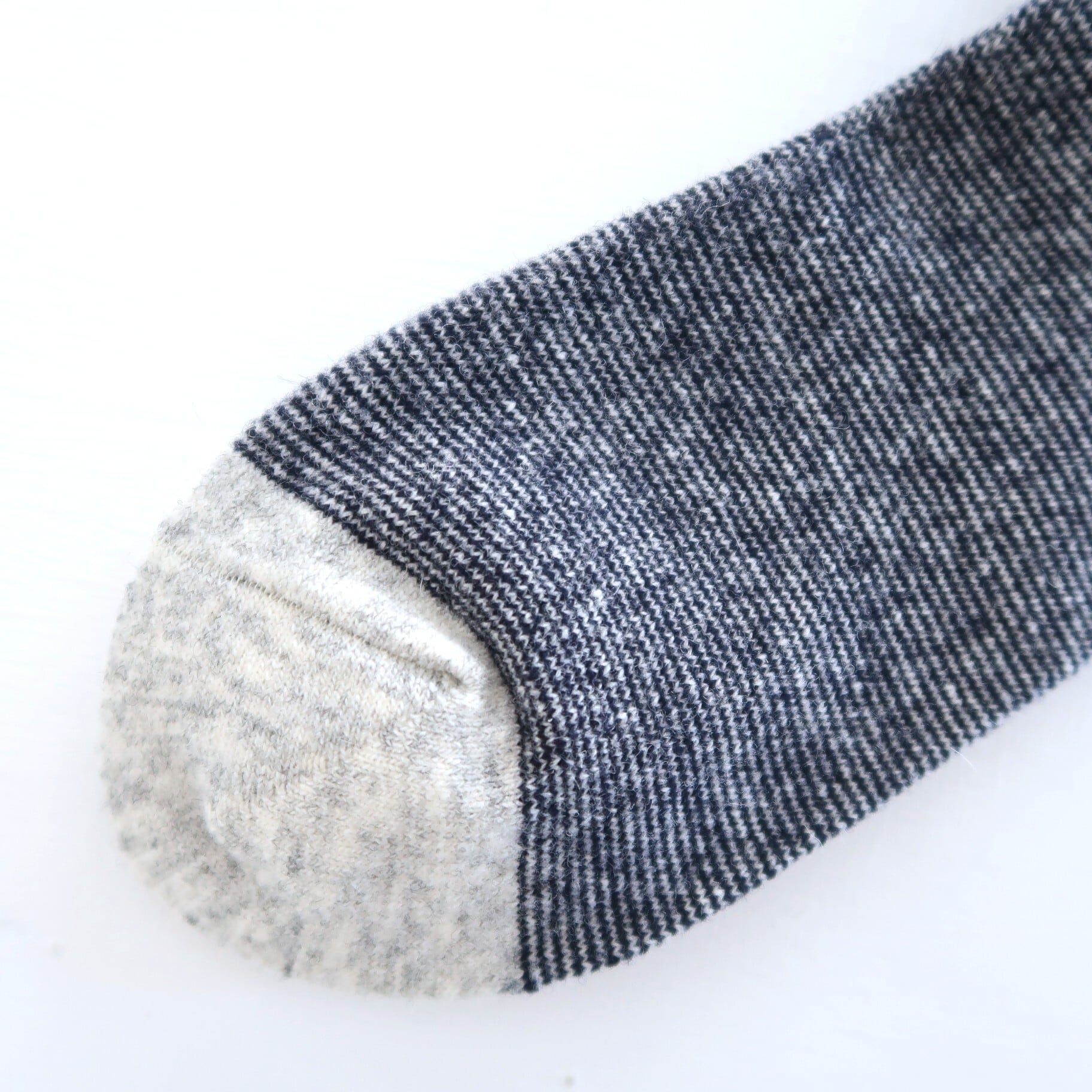 素材は、ふんわりと柔らかなラムウールで、身に着ければ着けるほど、ますます柔らかく肌馴染みがよくなり、また、しっかりと足元を温めてくれる、寒い冬には欠かせないあたたかソックスです。