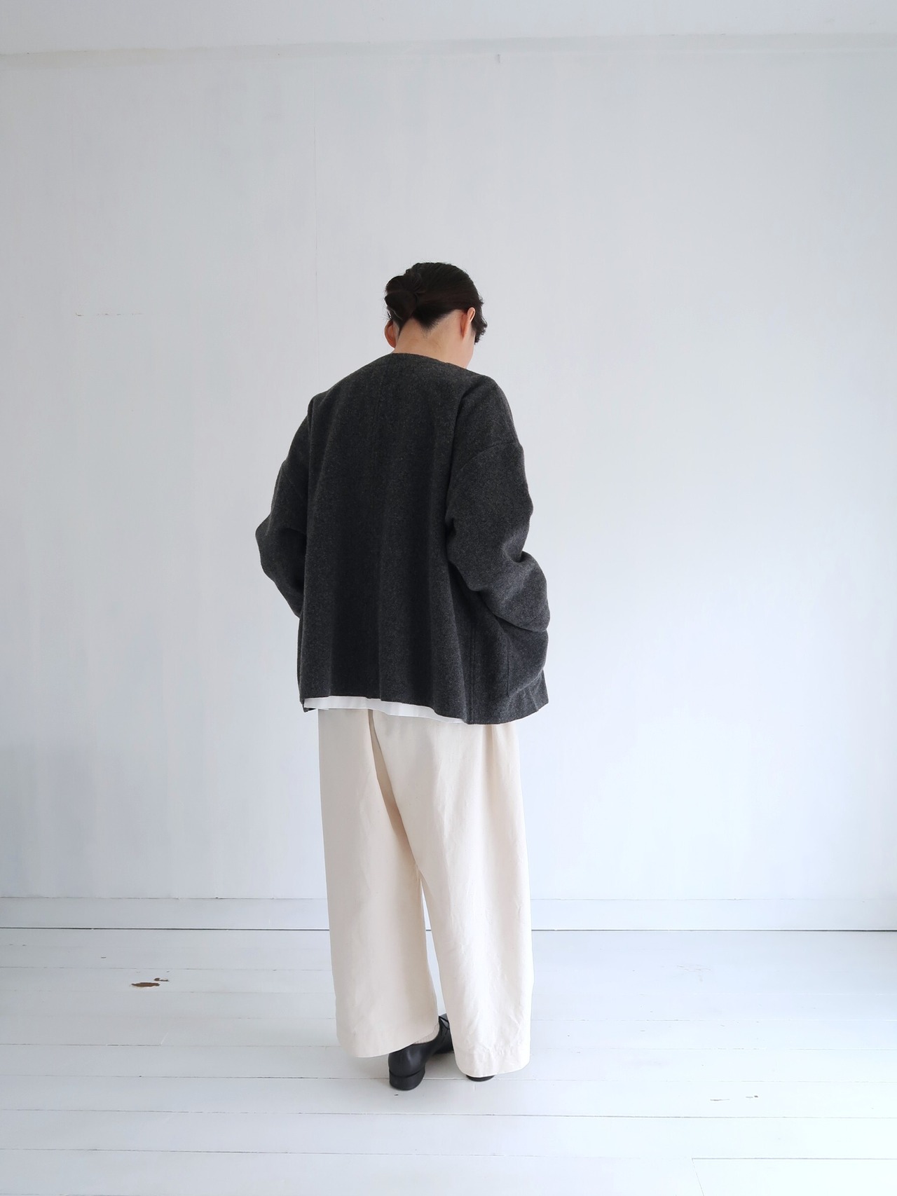 ジャケットとニットカーディガンの中間的なアイテムとして、シャツやワンピースなどに気軽に合わせてお使い頂けたらと思います。