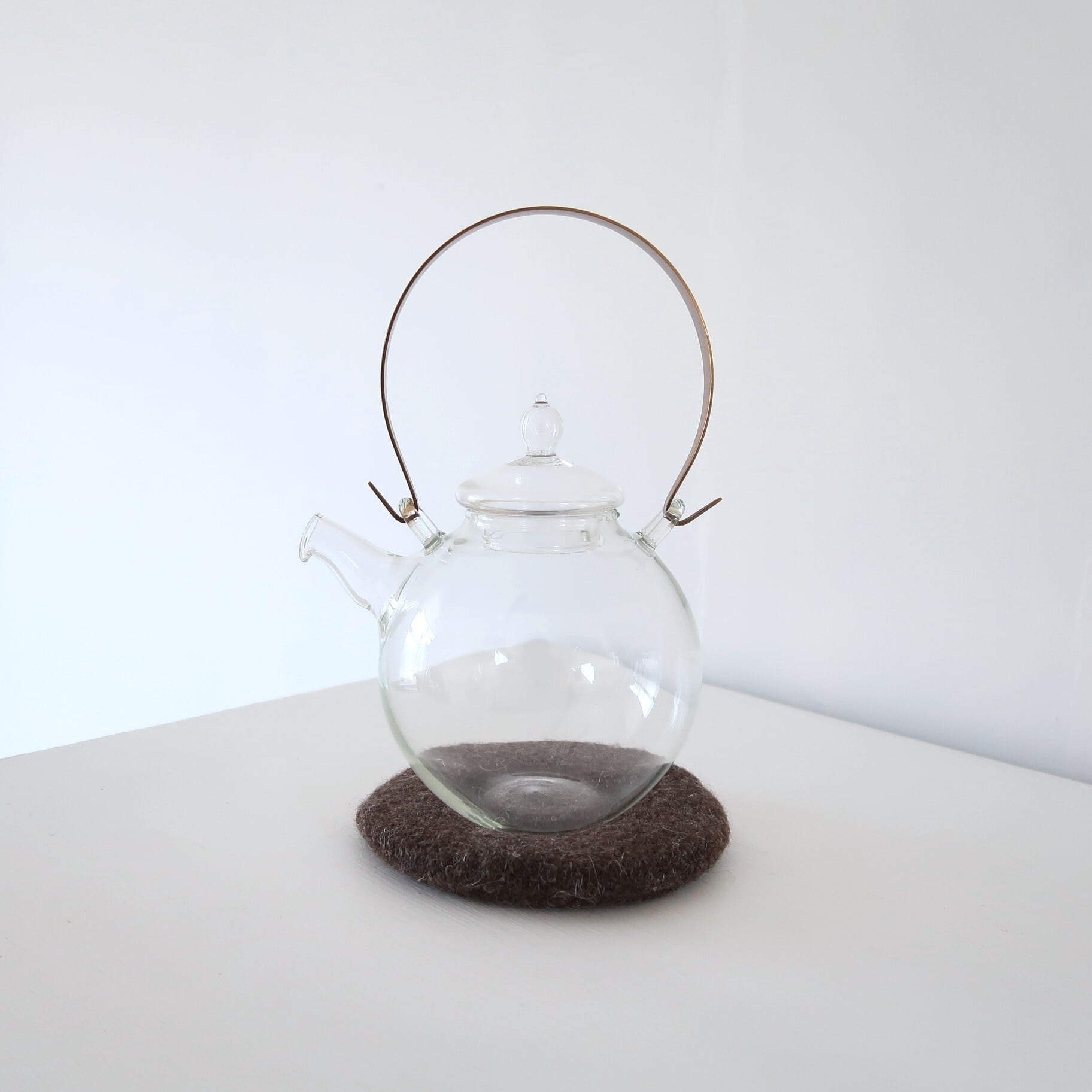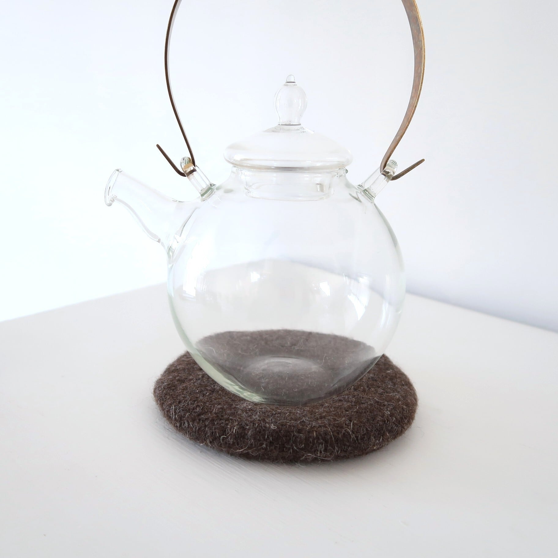 また、安心して熱いポットも載せられるように、中綿を二枚入れ、程よい厚みが出るように仕上げました。( ※ ガラ紡のpot mat より、やや厚みがあります。)