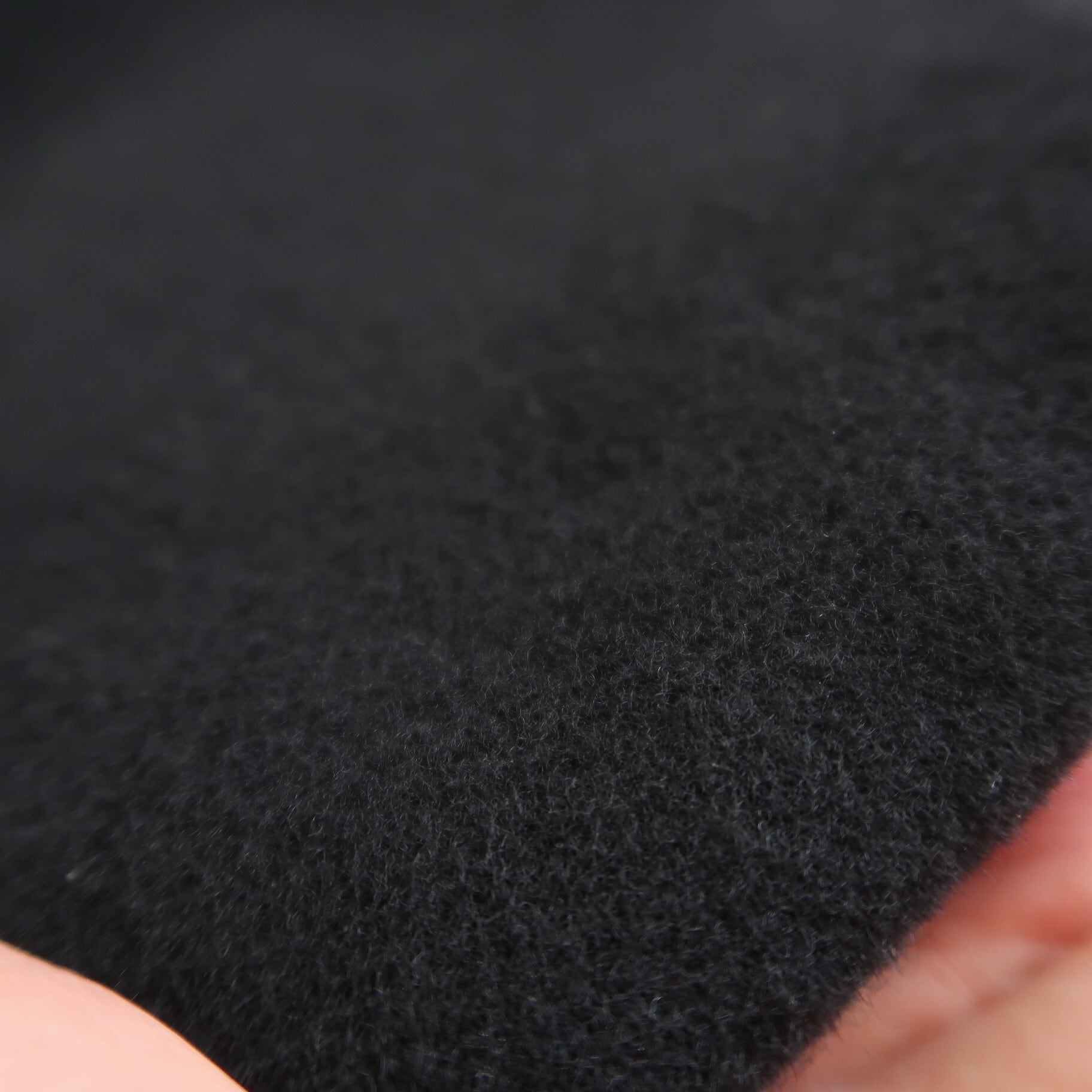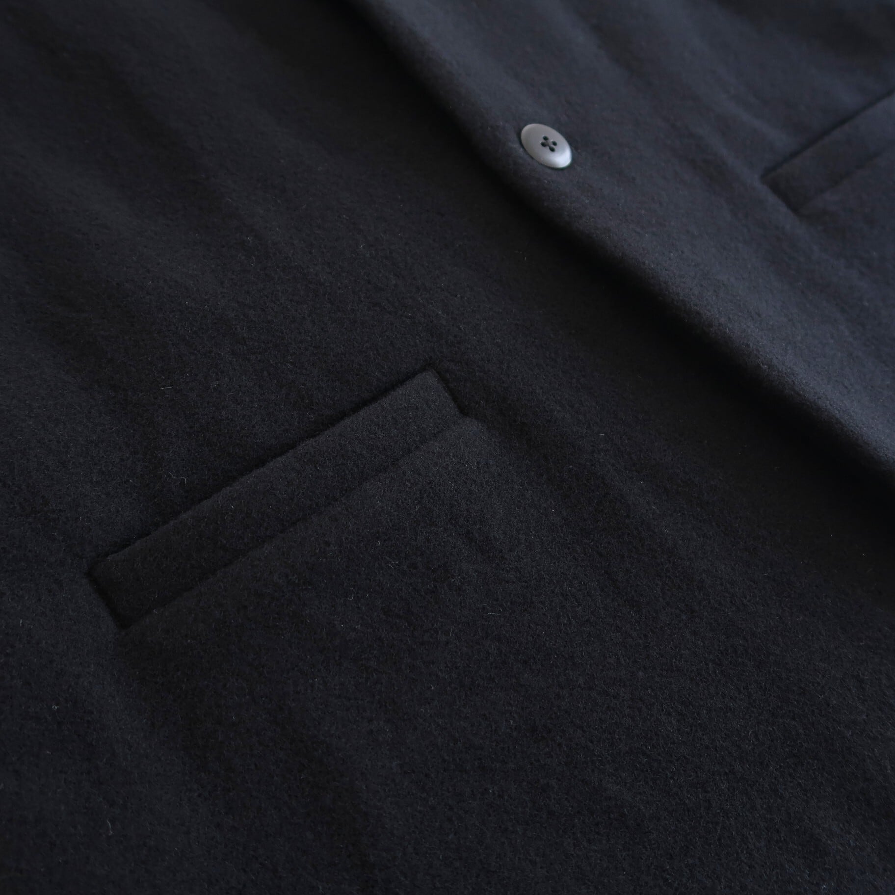 ラムウールをブレンドした上質で繊細なSuper100原料を使用し織り上げた布地を、通常より毛足が長く立ったパイルのようなモッサ仕上げ ( 毛織物を起毛し、毛羽を立てて短く剪毛し表面を苔のように仕上げる。) にした布地は、膨らみがあり、やわらかで肌触りがとてもソフト。