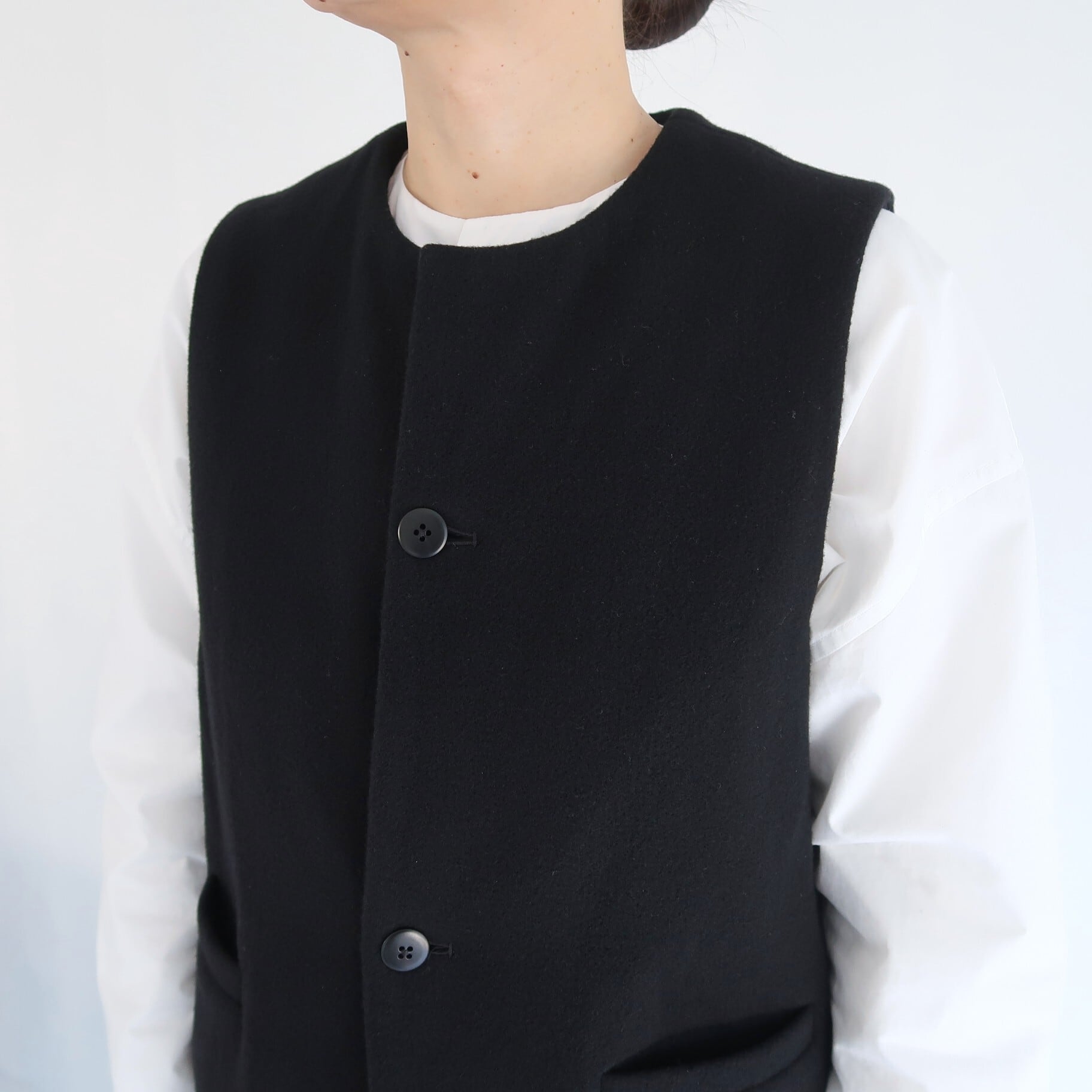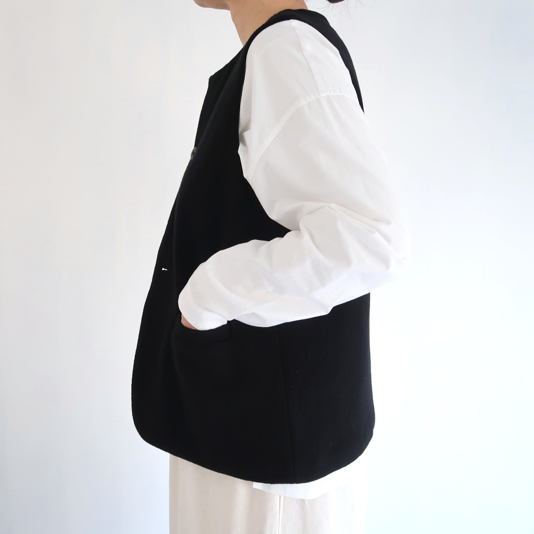 ブラウスやワンピースの上からアウターとして、また、ジャケットやコートのインナーとしても、色々 重ねてご着用頂けたらと思います。