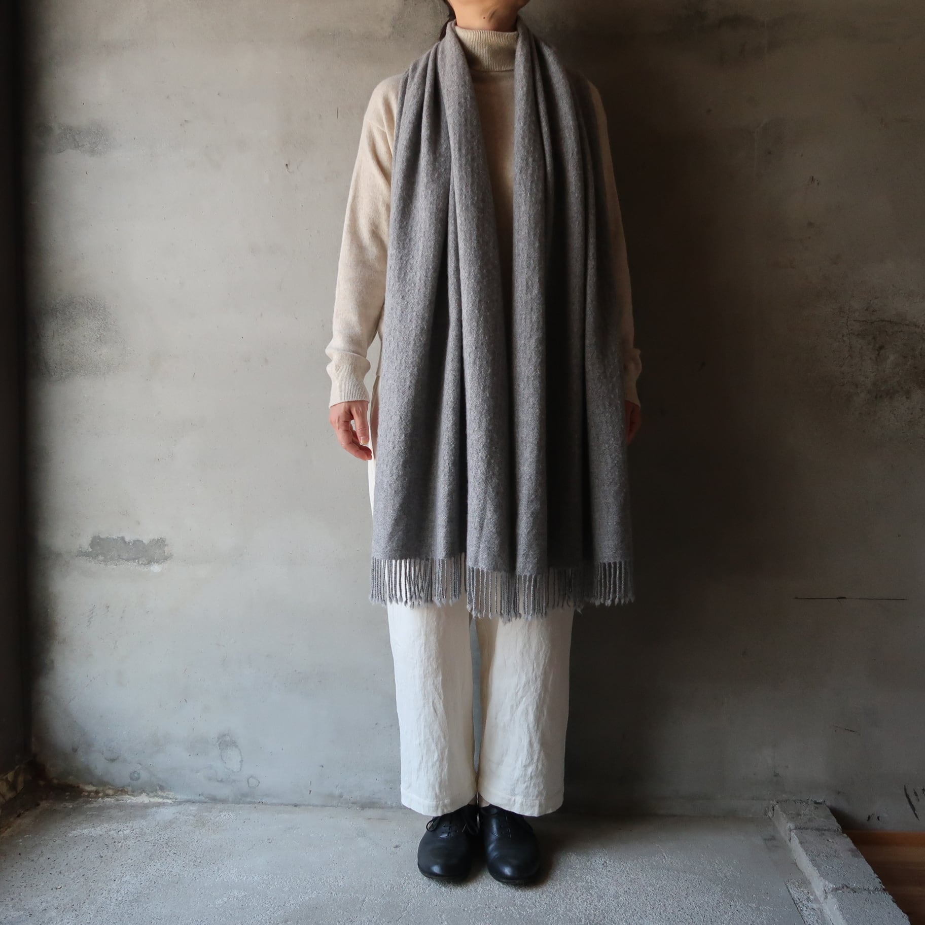 首に巻いても、肩に掛けても、ちょうど良いボリューム、サイズ感のカシミヤ100%の大判ショール。