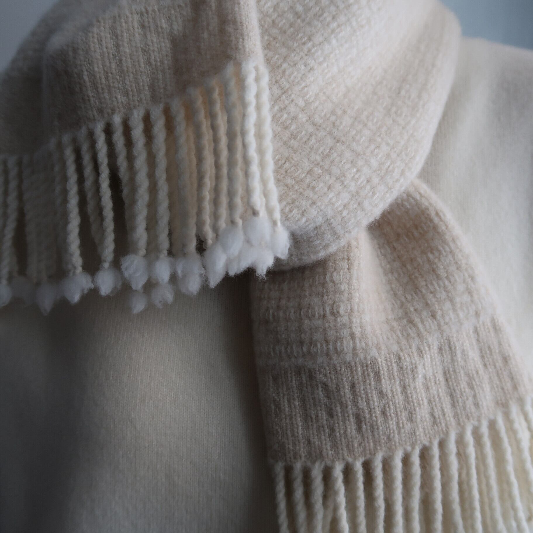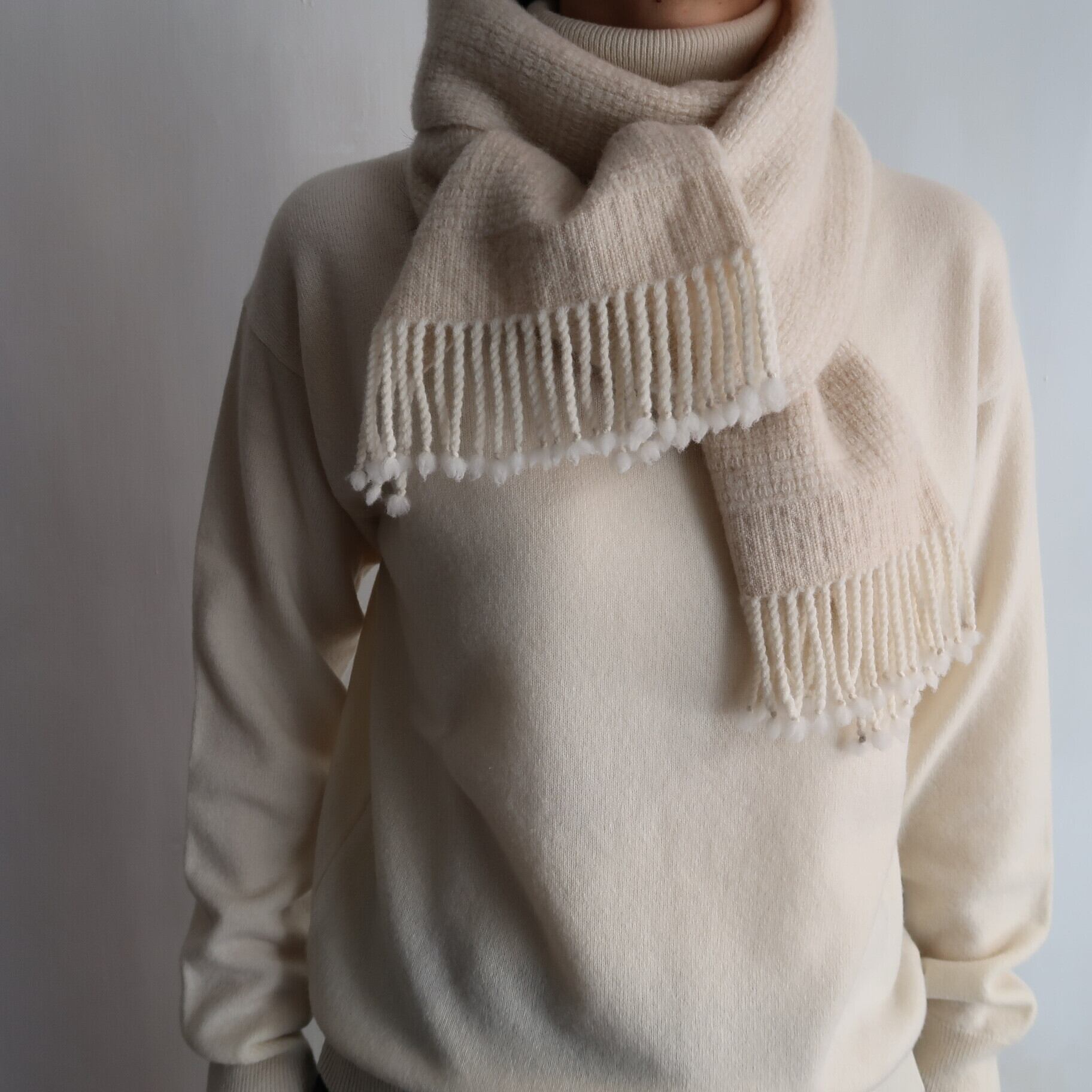 what is there / " puff " hand woven muffler ( white × ivory )