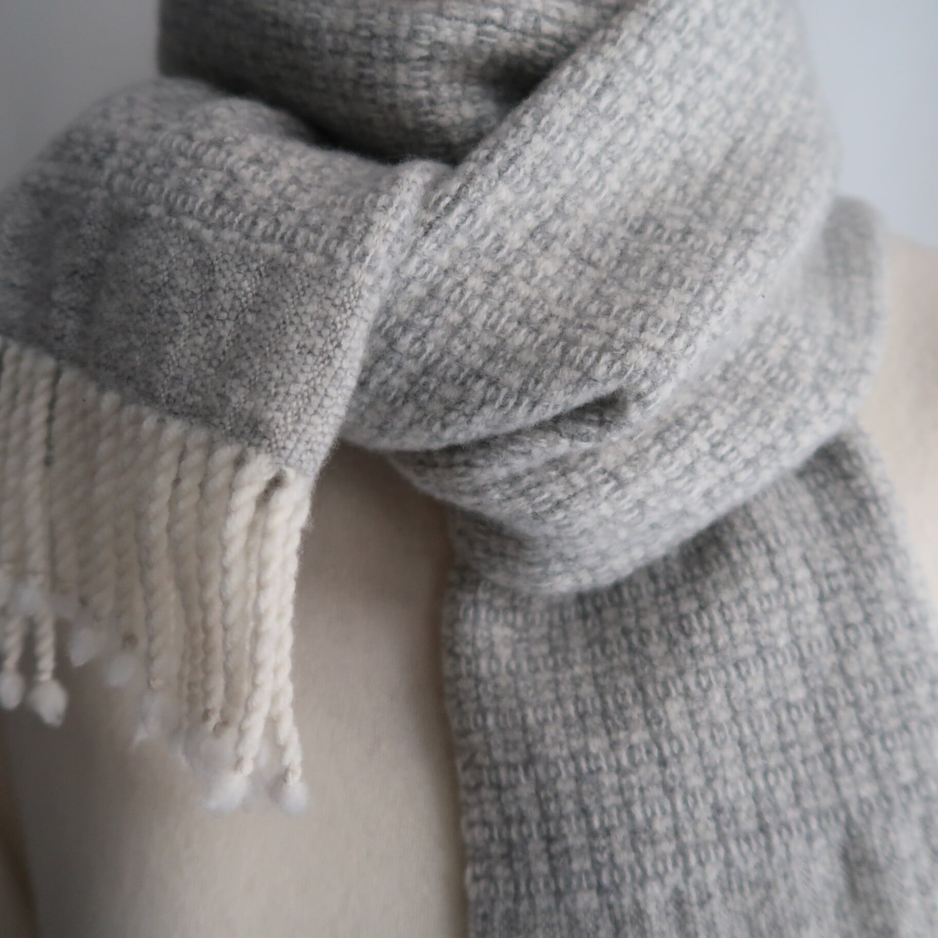 ニュージーランド南島に位置する、クック島周辺の山岳地帯でのみ飼育される、羊のウールを使用して手織りしたマフラーです。