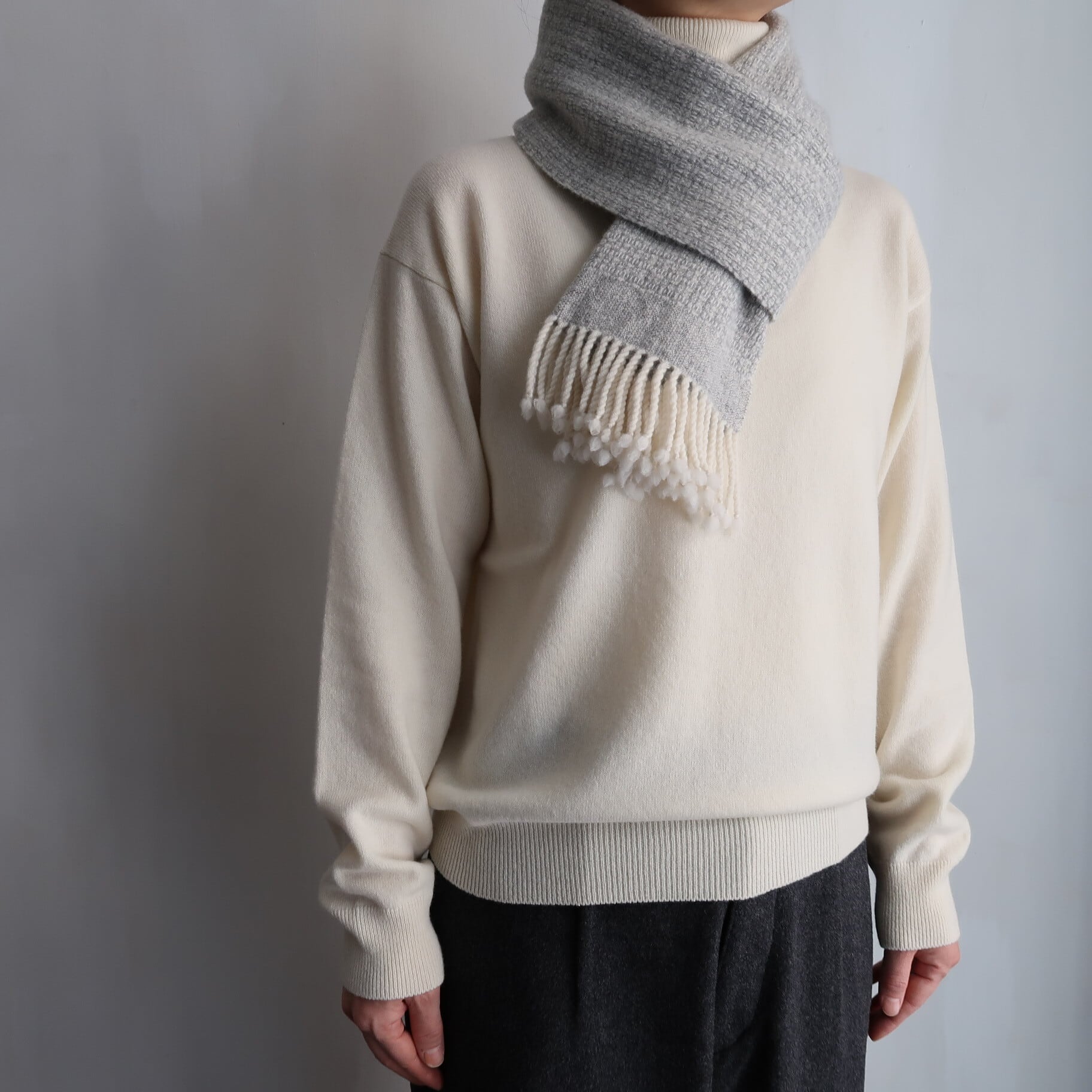 what is there / " puff " hand woven muffler ( white × lt.gray )