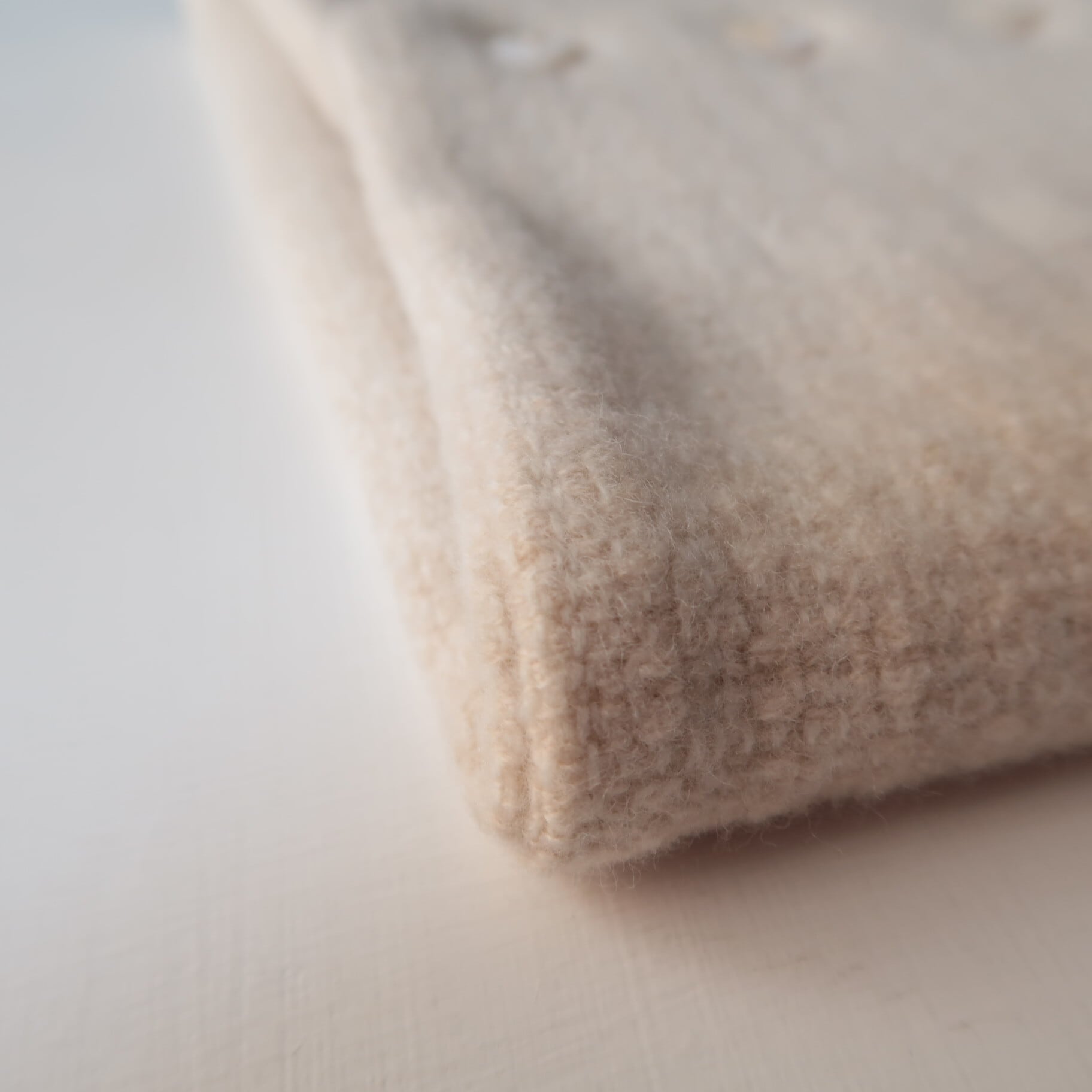 スポンジ性があり、ソフトな風合いと軽さが特徴の超極細ウール( エクストラ スーパーファインウール )で、カシミヤに匹敵する繊細さ、しなやかさがあります。