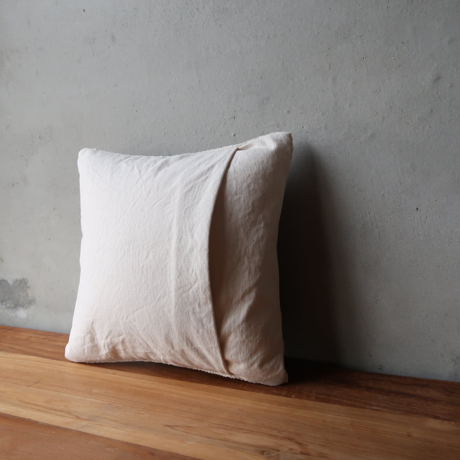 裏面の差し込み口からクッションの出し入れをする、シンプルな仕様。( 差し込み口の裏側にプリントロゴが入っています。)