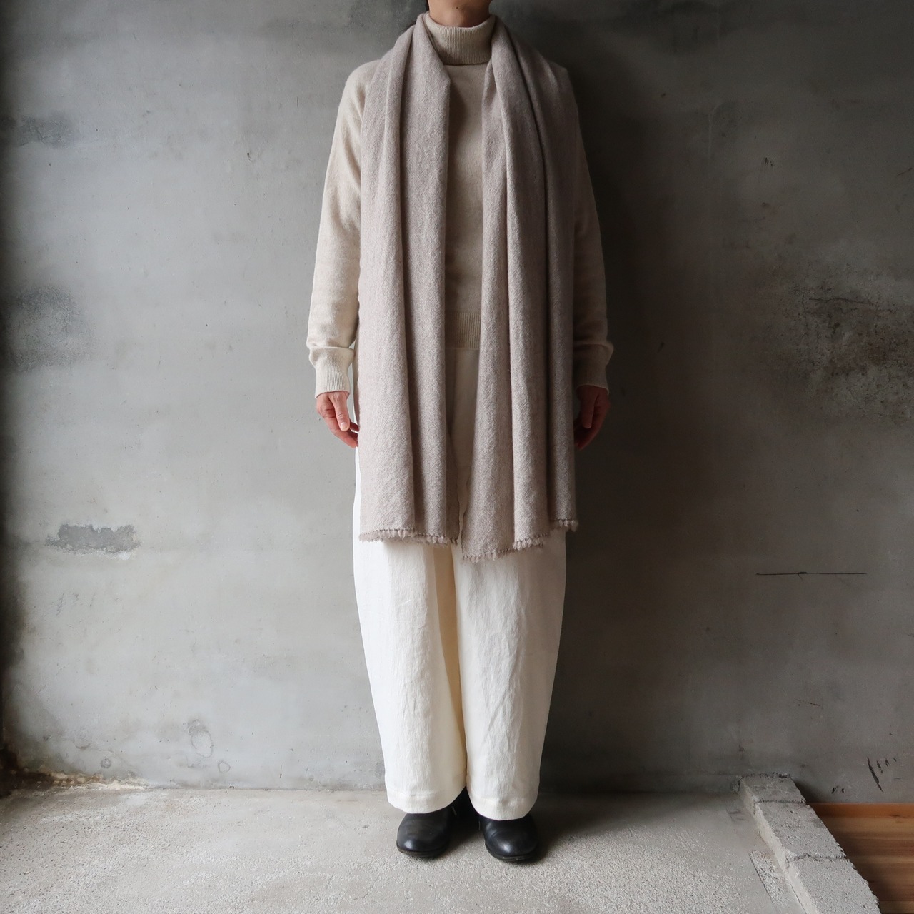 what is there / 平織りの カシミヤショール ( 杢 b.beige )