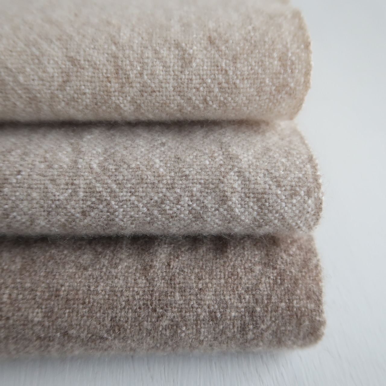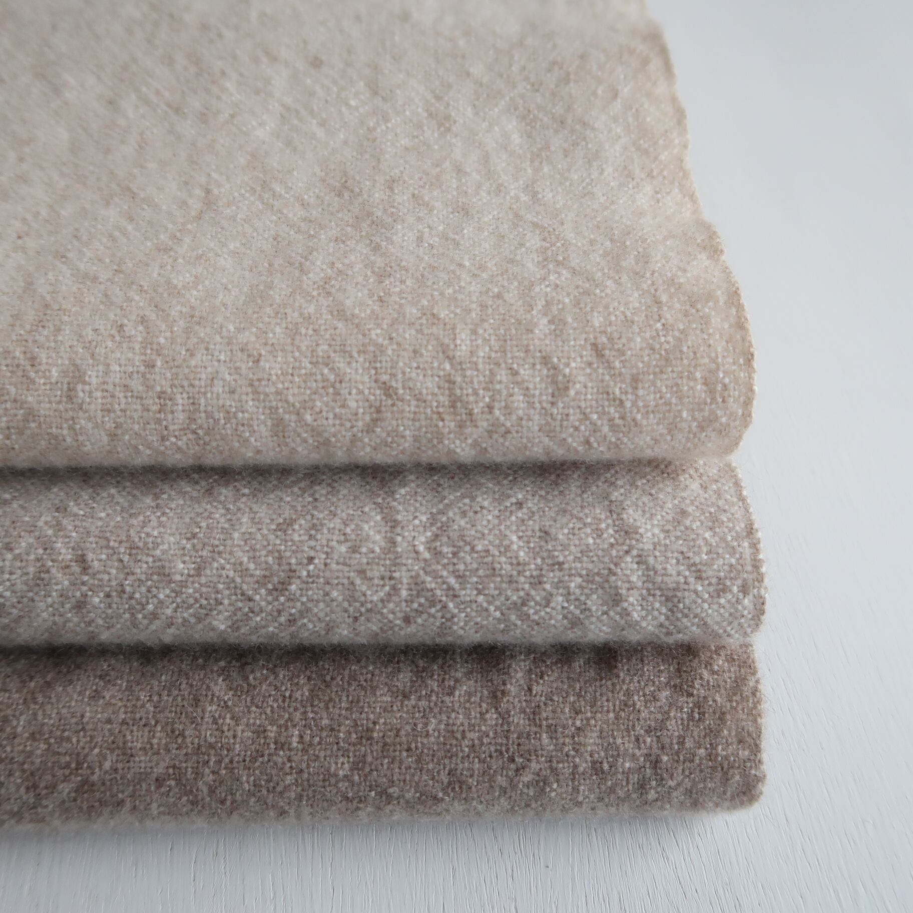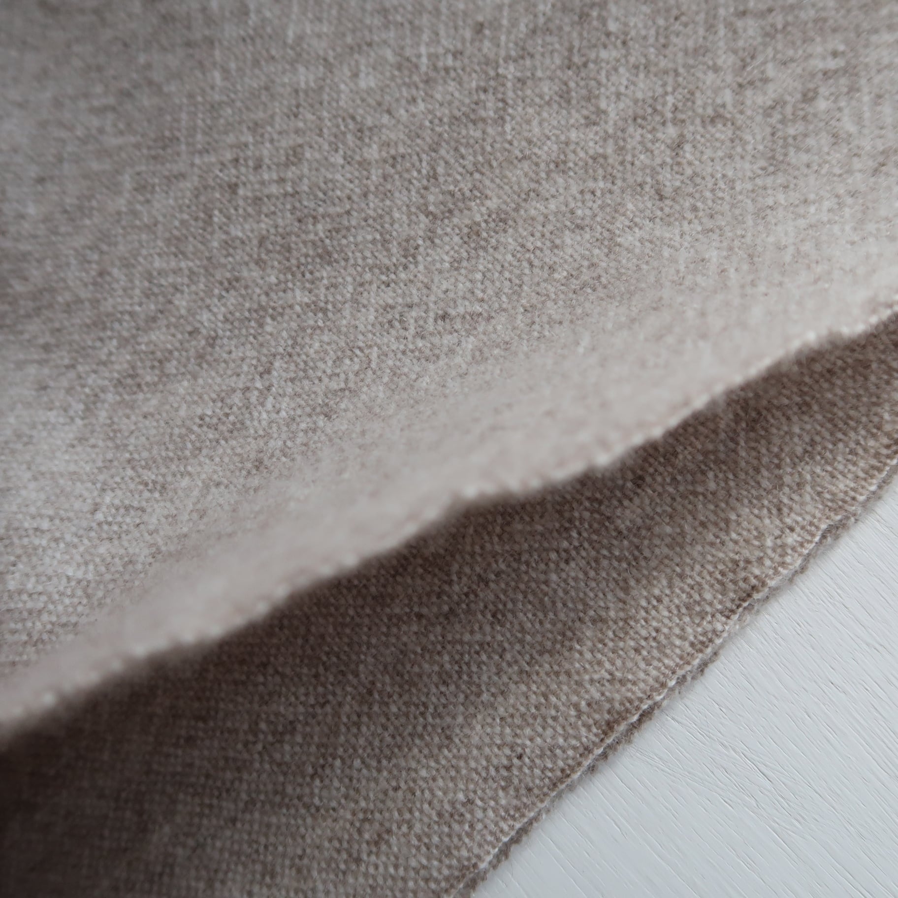 タテヨコ共にカシミヤの糸を使用して、シンプルに平織りで織り上げました。