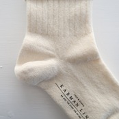 素材は、ふんわりと柔らかなラムウールで、身に着ければ着けるほど、ますます柔らかく肌馴染みがよくなり、また、しっかりと足元を温めてくれる、寒い冬には欠かせないあたたかソックスです。