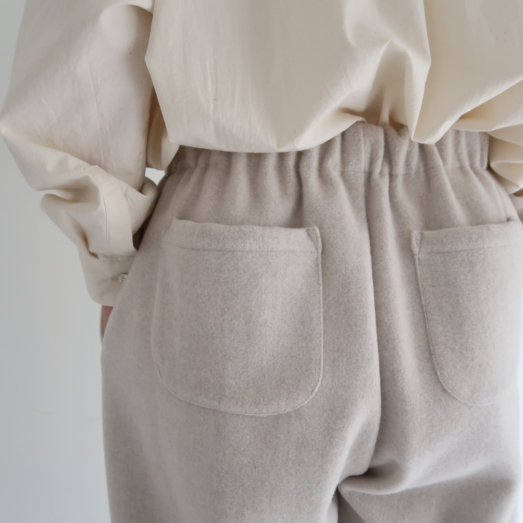 ※ atelier&shop では、こちらのパンツの製品サンプルをご用意しております。sold outの場合も、生地の在庫がある場合は、ご試着頂いた上で ご注文も承ります。