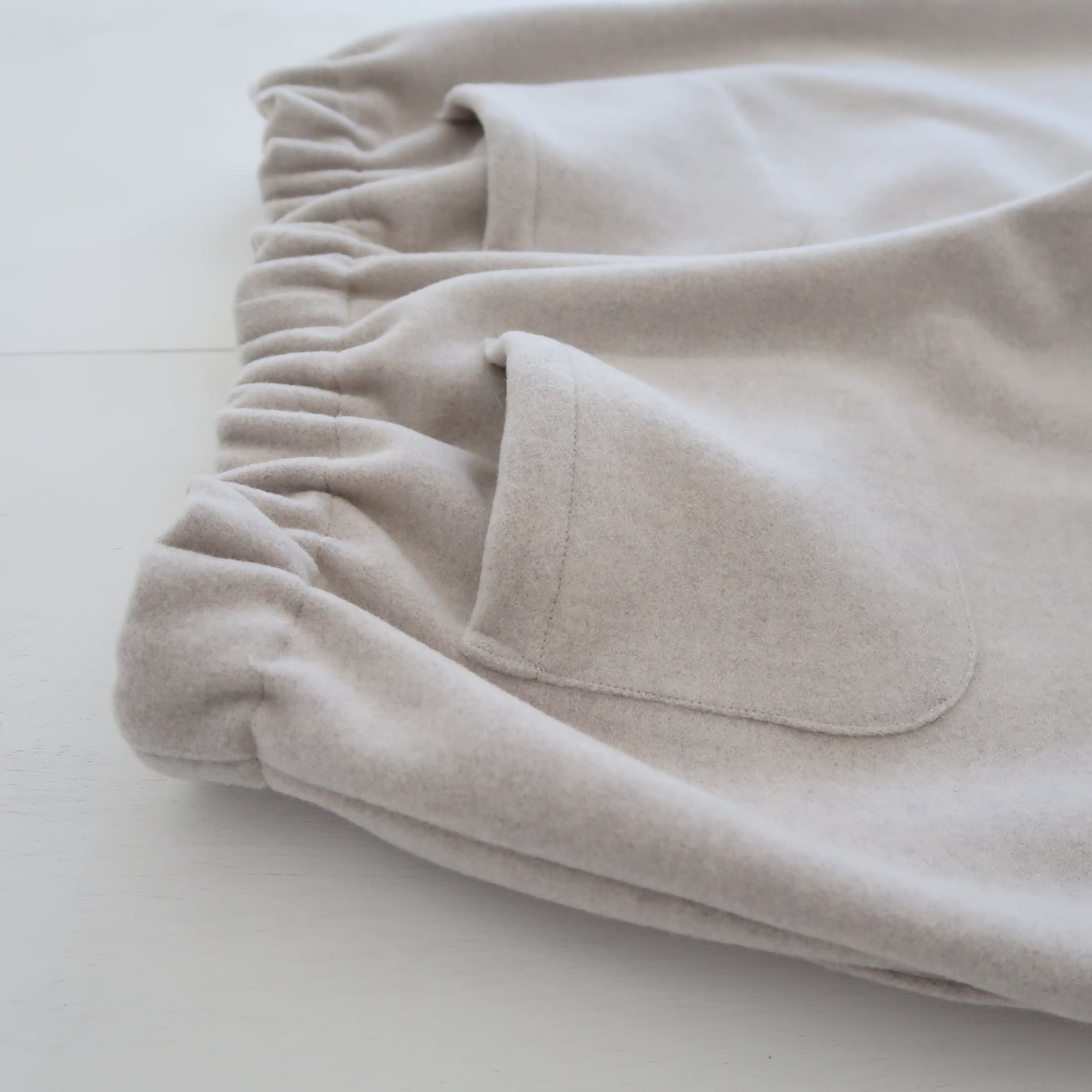 また、ウエストは、ゴム+ドローコードの仕様で、比較的幅広いサイズの方に。( 布テープのドローコードがウエスト内側に付いた仕様 )