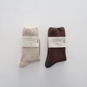 素材は、ふんわりと柔らかなラムウールで、身に着ければ着けるほど、ますます柔らかく肌馴染みがよくなり、また、しっかりと足元を温めてくれる、寒い冬には欠かせないあたたかソックスです。