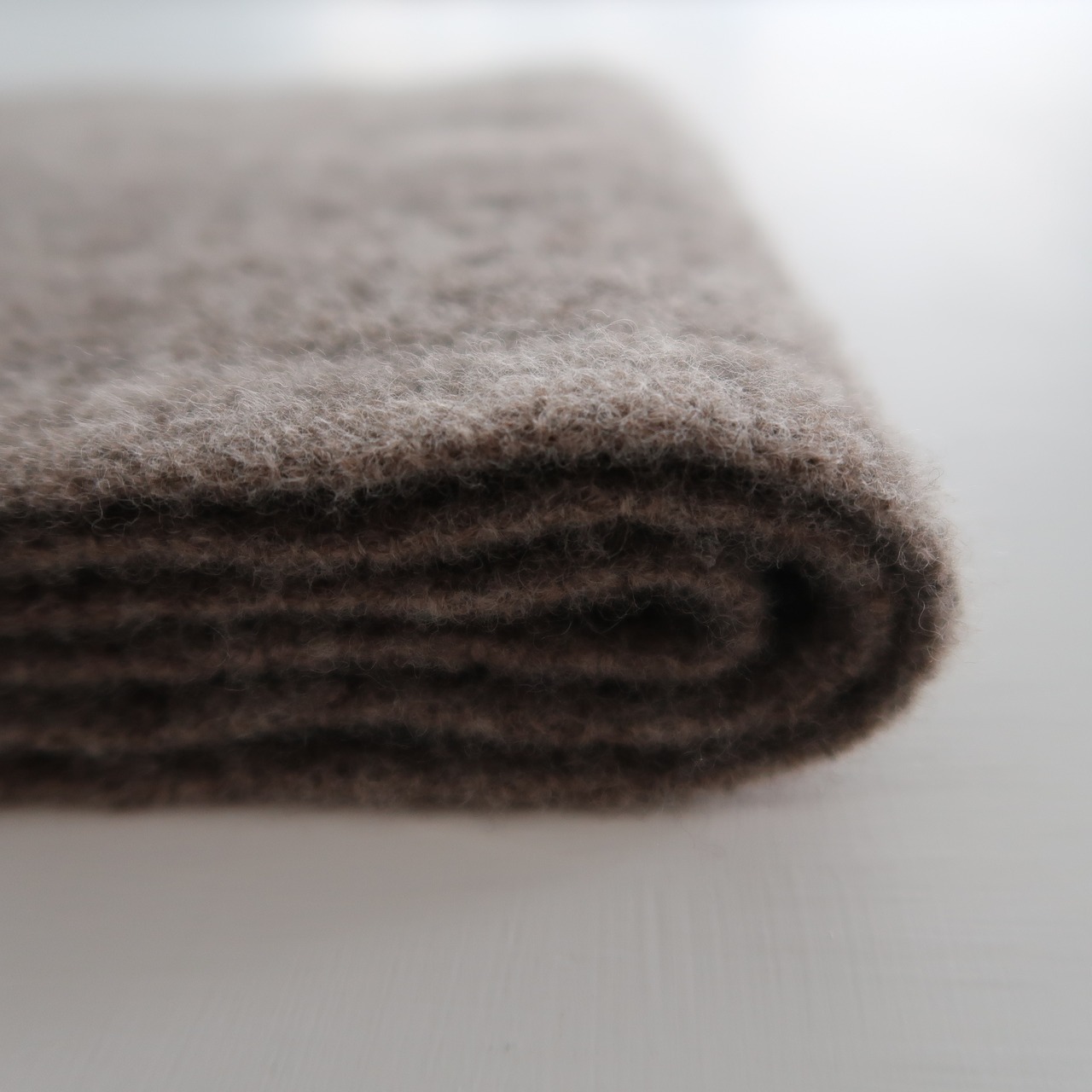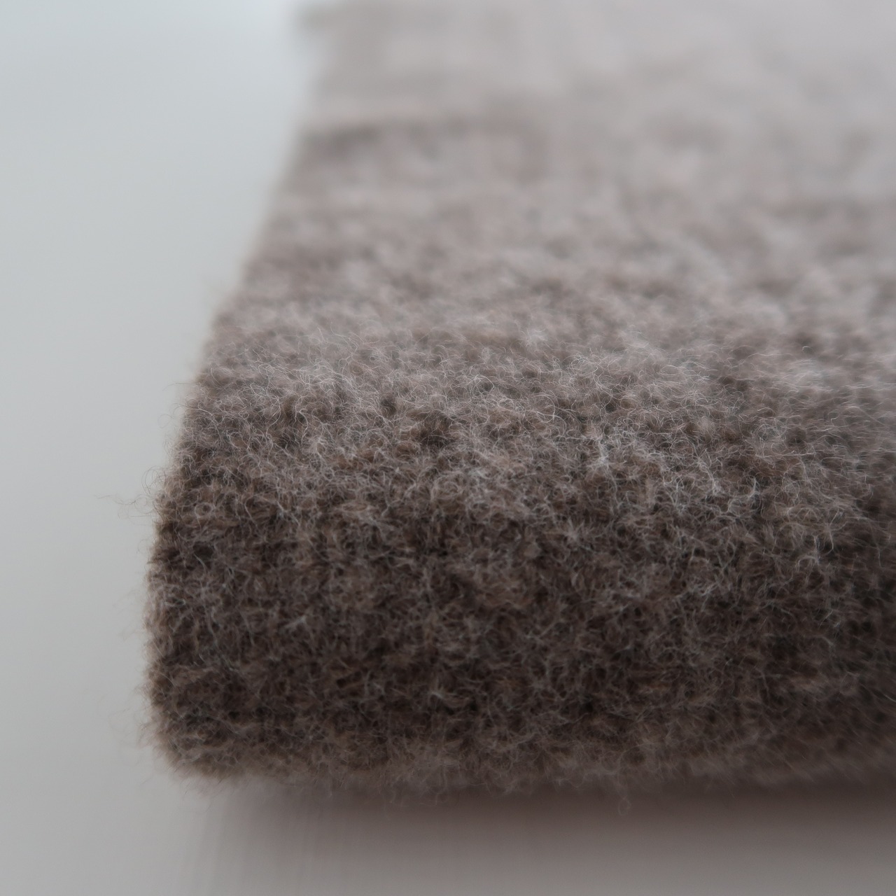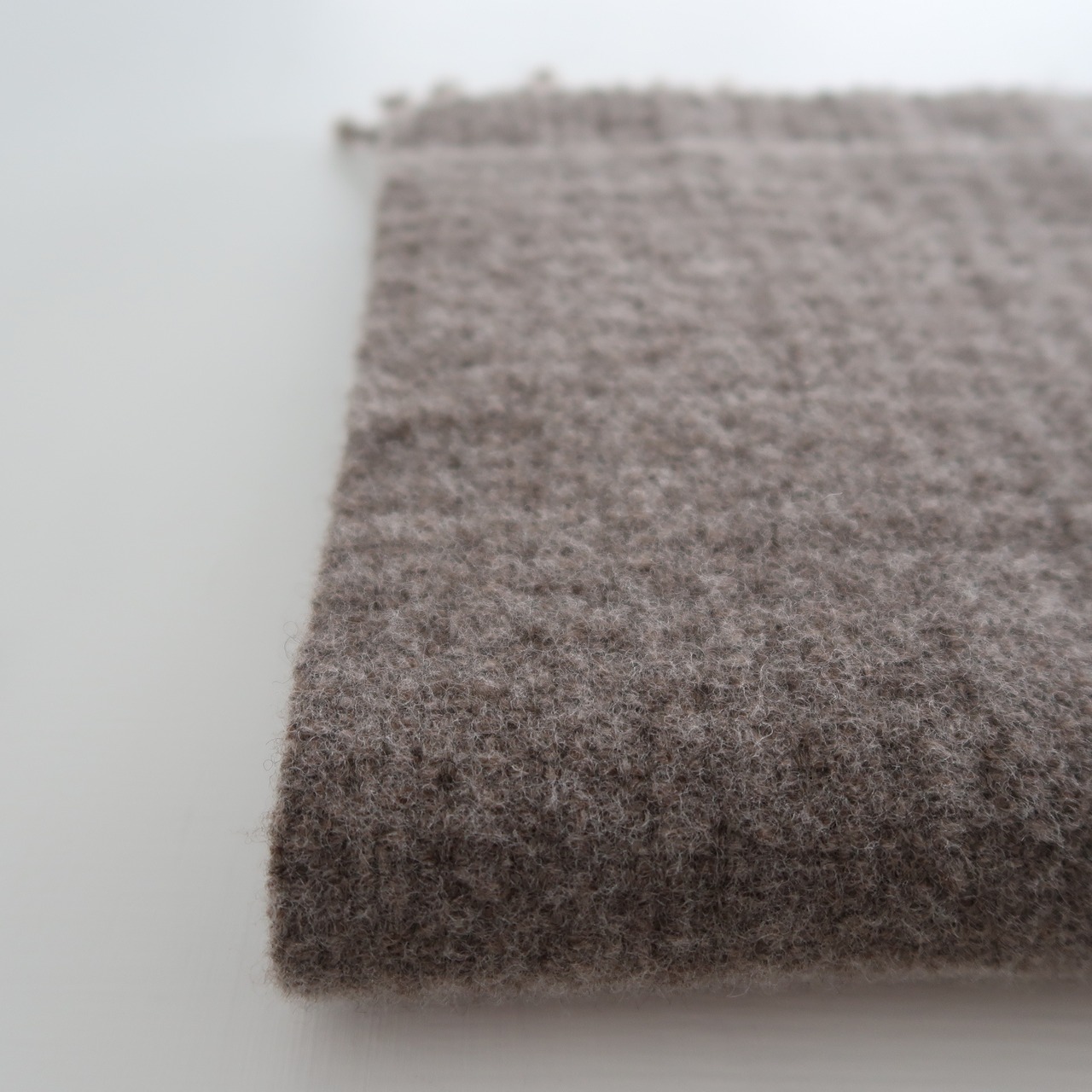 ナチュラルウールというと、ガサっとして太く硬質なものを想像されるかもしれませんが、こちらは有色羊の中でも最も細い部類のウール( 約 20.5μ )になっており、羊本来の風合いがありつつも、肌触りの良いウールになっています。