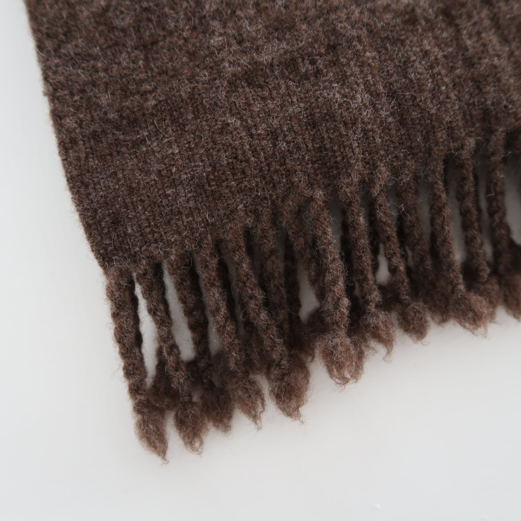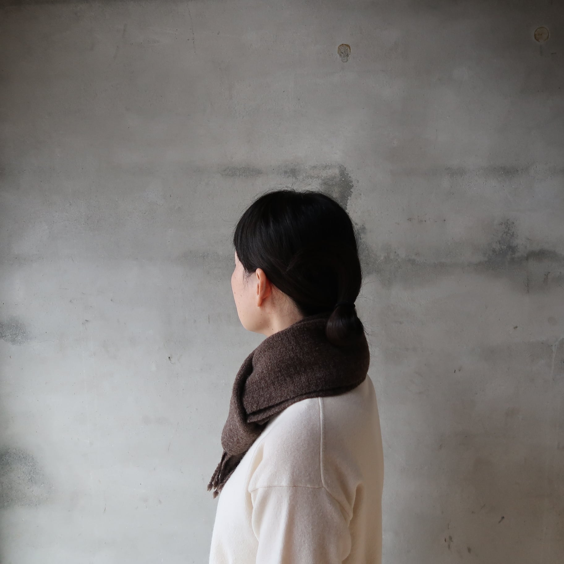 サイズは、首元にコンパクトに巻いて頂けるサイズ感になっています。( ニュージーランド産ウールのタイプより、やや厚みがあり、よりコンパクトなサイズに。 )