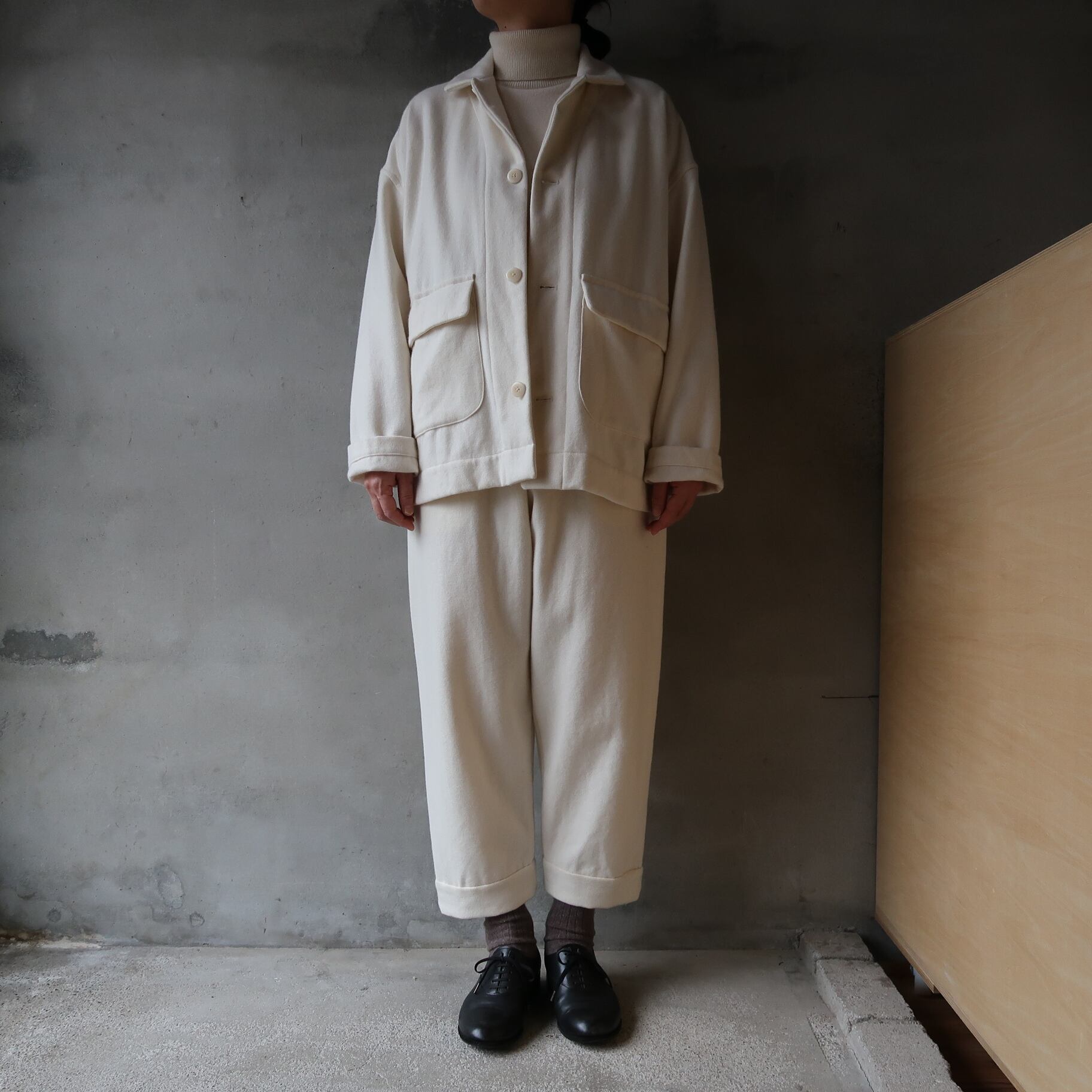 今回、カバーオールジャケットを制作するのにあたって選んだ素材は、 ウール混のライトメルトン。