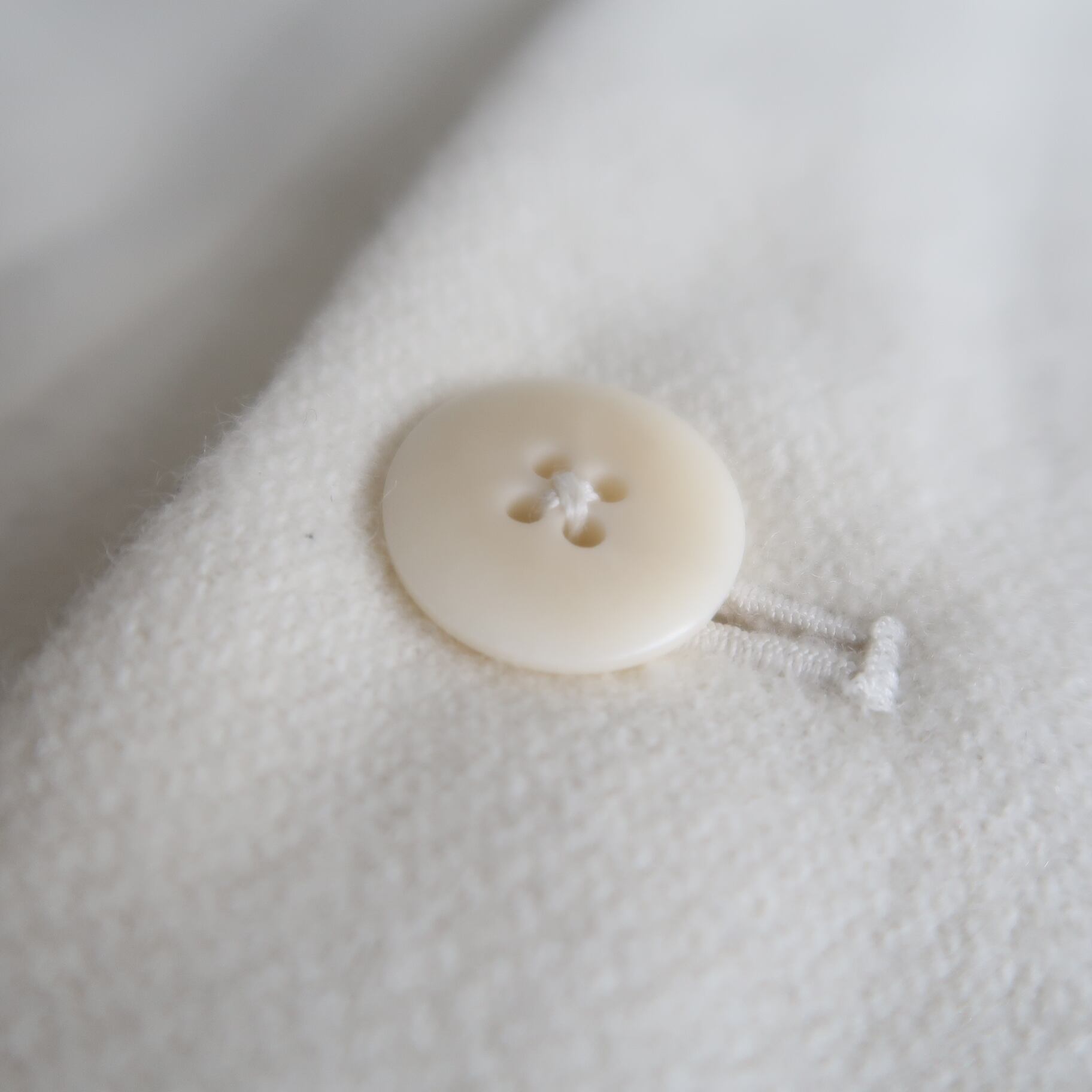 ボタンには、ナットボタンを使用。( 南米エクアドル原産のタグワ椰子の実の種を原料にした、天然のボタン。)