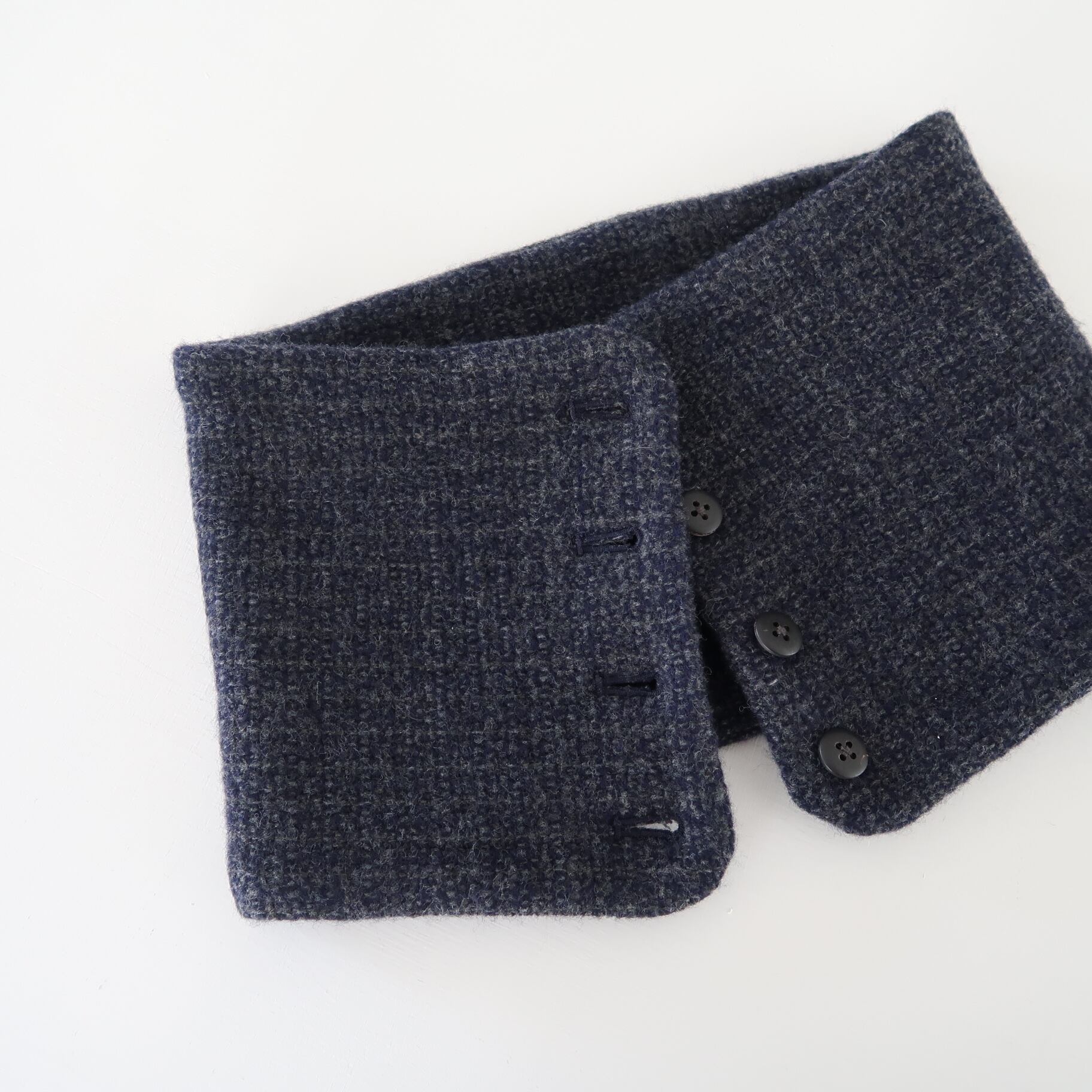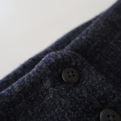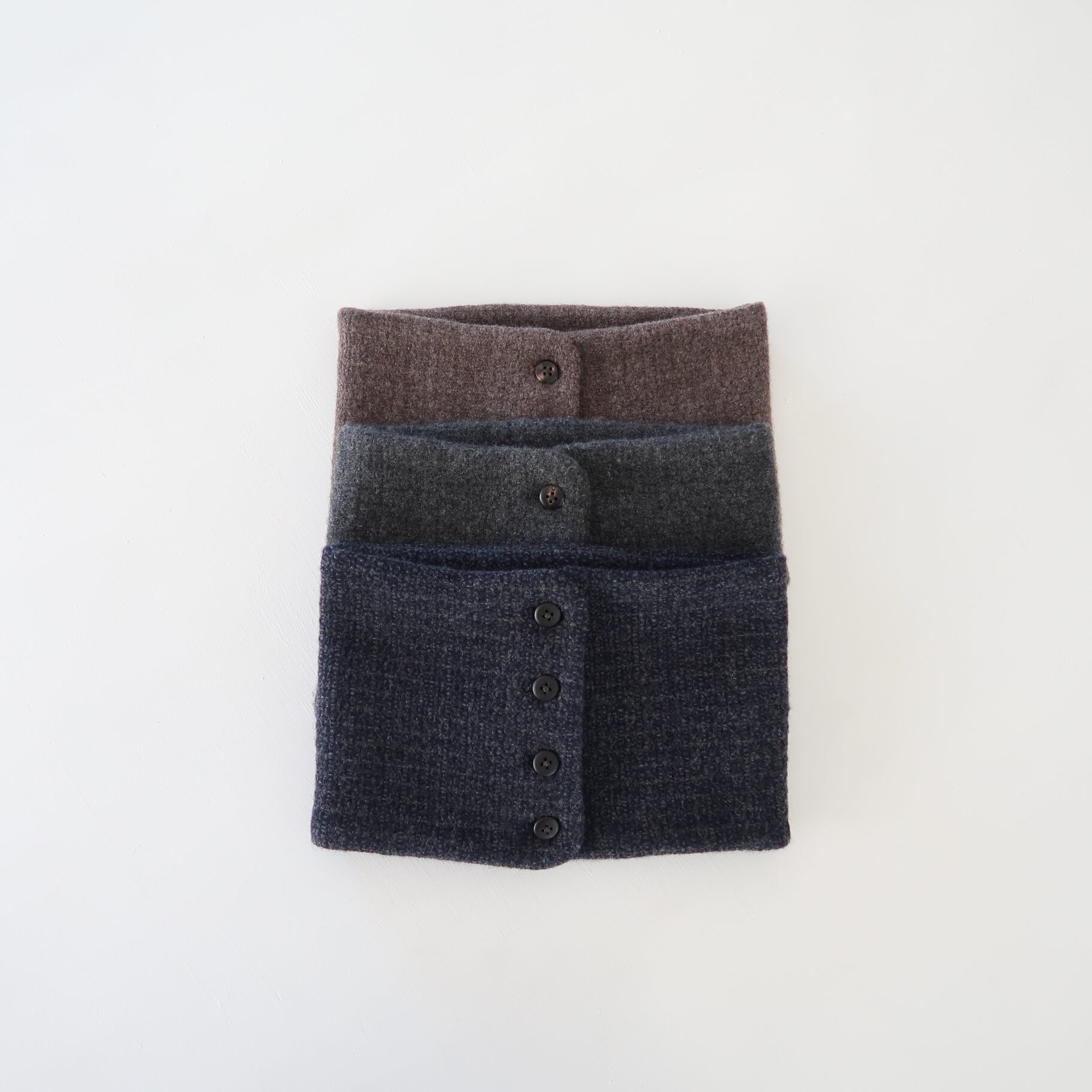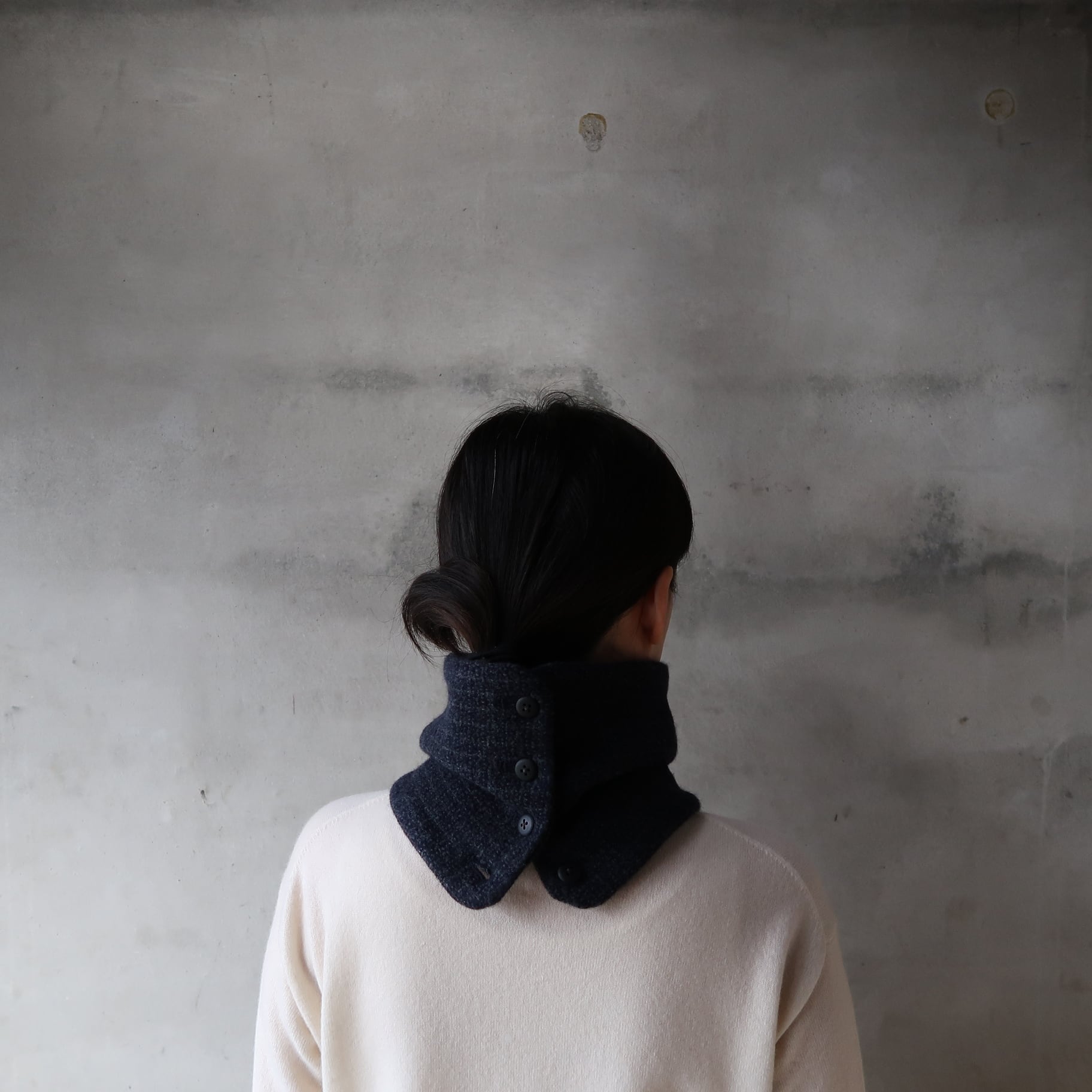 また、ネックカバーは、ボタン開きになっており、ボタンの位置を前後左右にすることで雰囲気を変えたり、ボタンの開閉によって、つけ襟っぽくしたり、、、色々と試しながら、どうぞお楽しみ下さい。