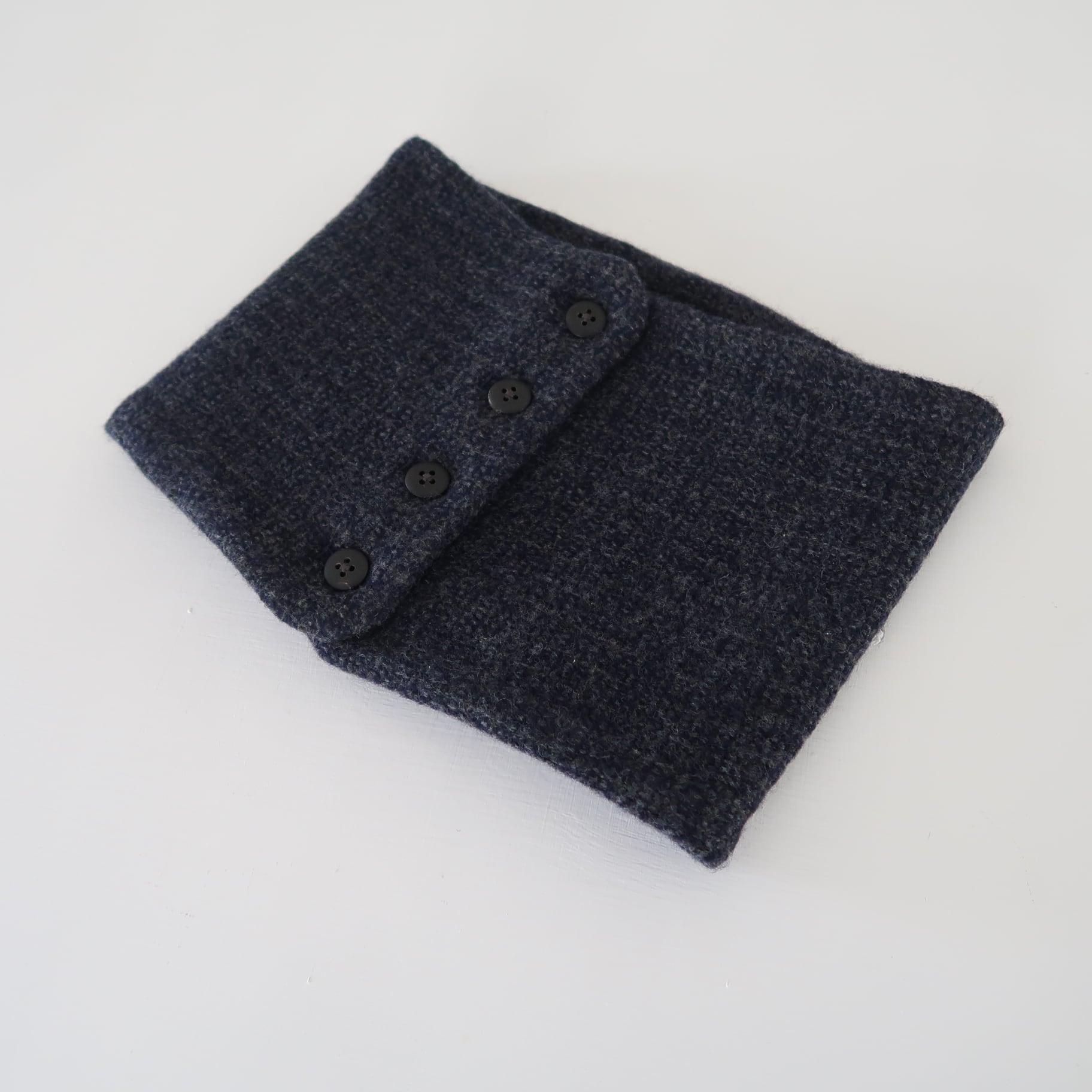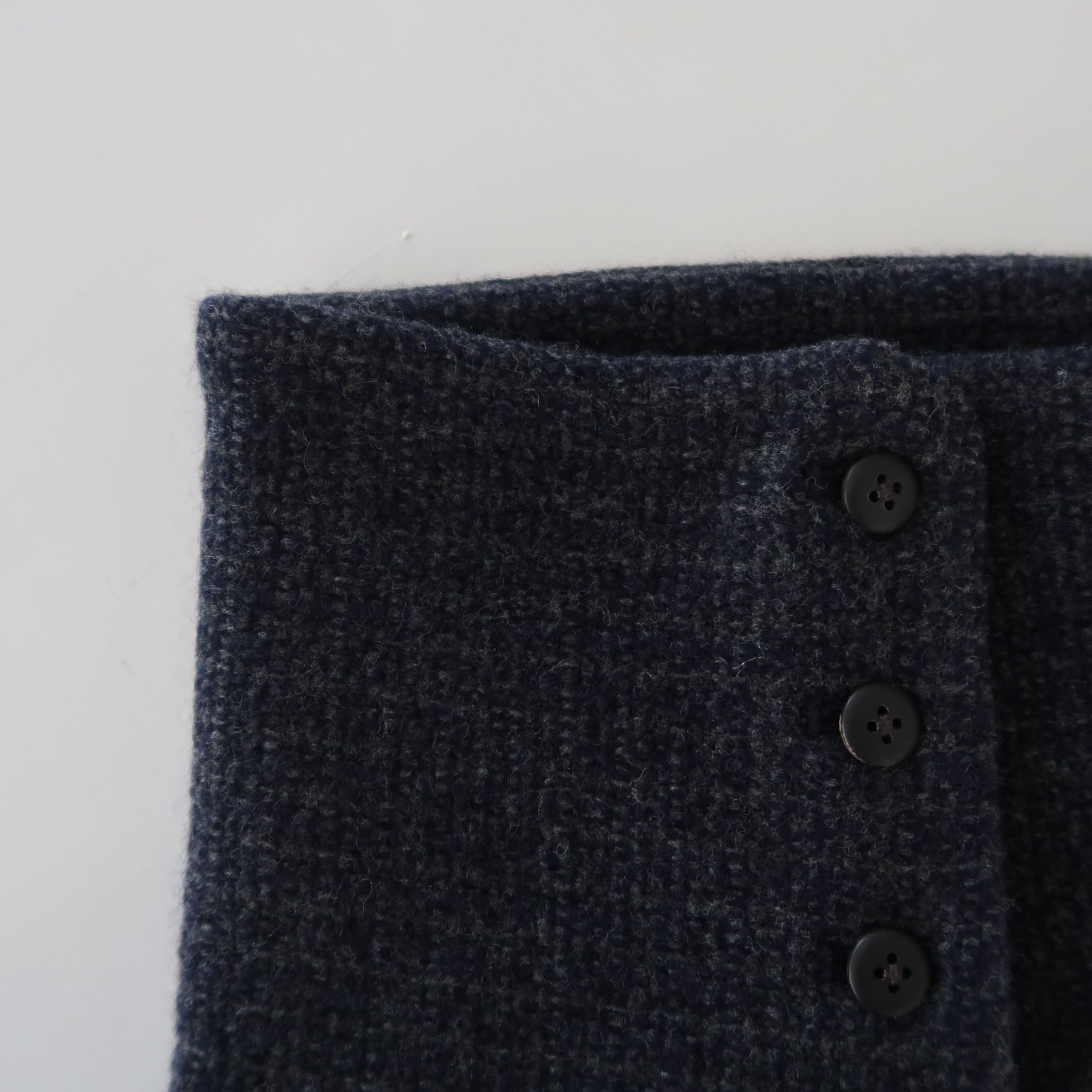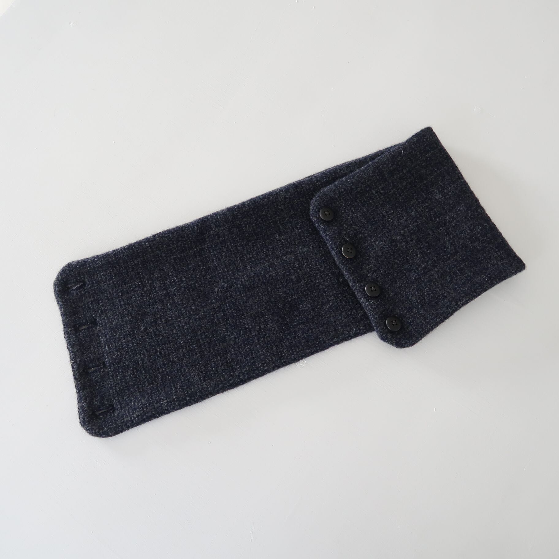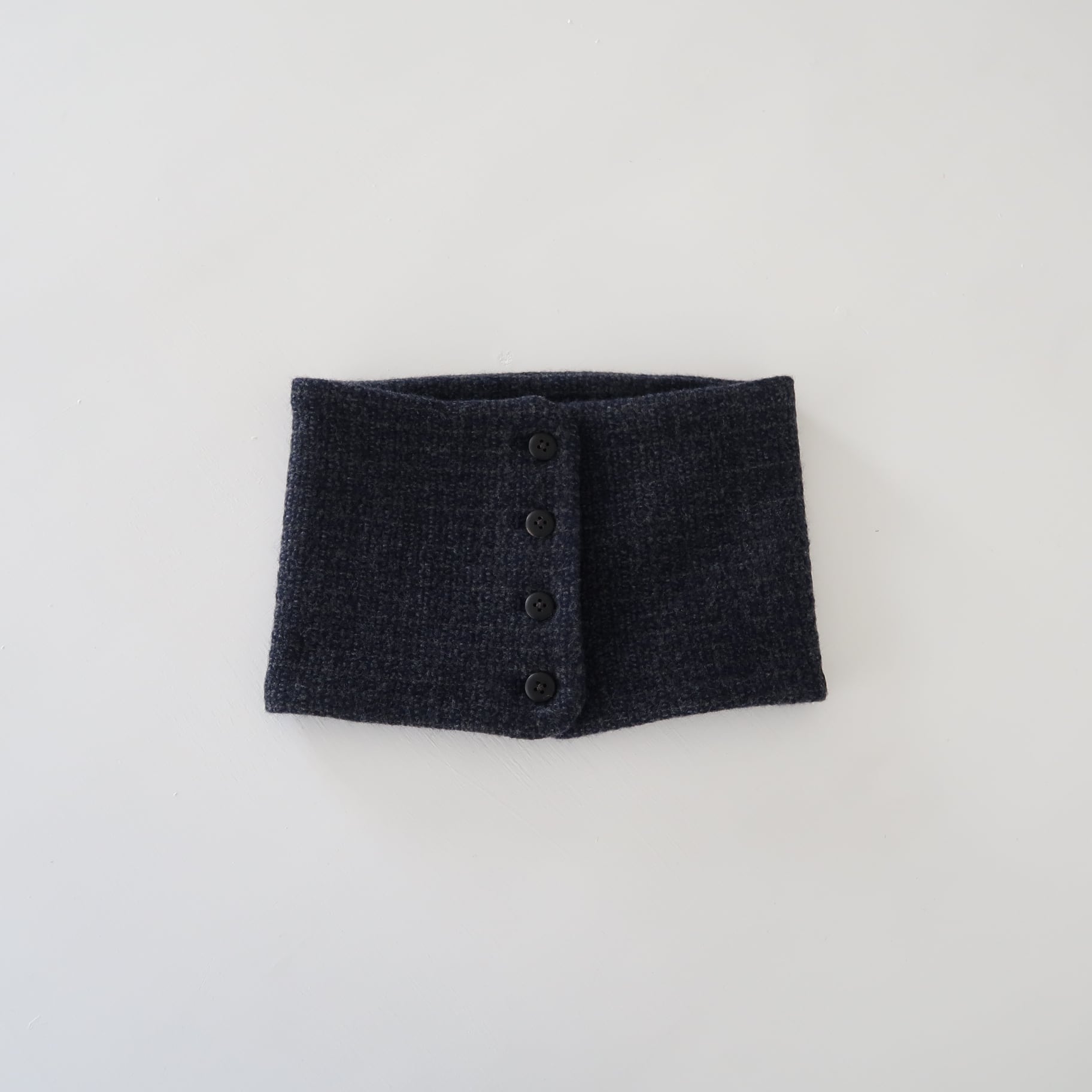 また、ネックカバーは、ボタン開きになっており、ボタンの位置を前後左右にすることで雰囲気を変えたり、ボタンの開閉によって、つけ襟っぽくしたり、、、色々と試しながら、どうぞお楽しみ下さい。
