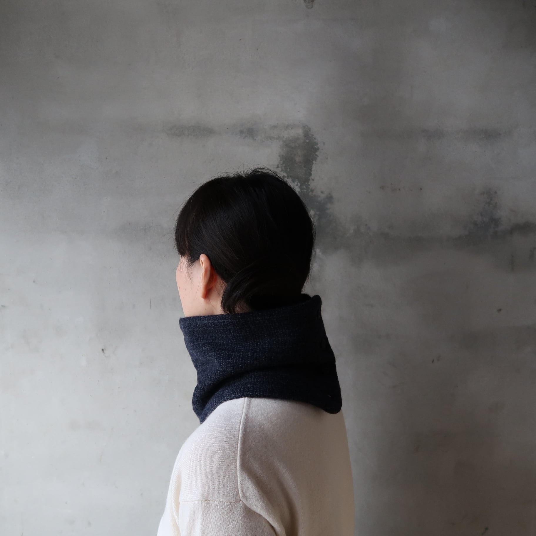 " puff " のふっくらとした厚みのある生地を、二重の仕立てにすることによって、保温力が高く、首元の収まりが良い感じで、ニットと布帛の、また、服とマフラーのちょうど中間的なニュアンスに。