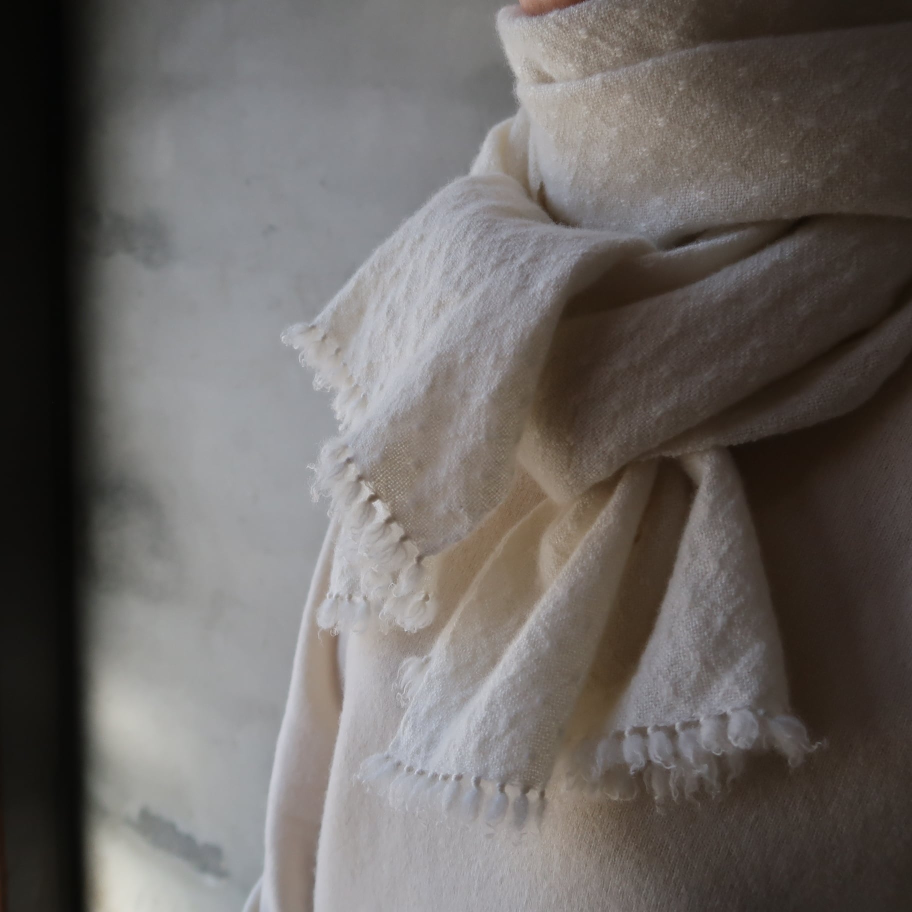 what is there / 組織織りの カシミヤマフラー( snow white )